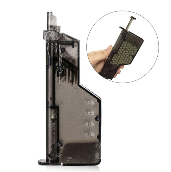 This type of speed loader offers the user large capacity bb storage of 155 rounds. The quantity of BBs the unit can hold is perfect for users running mid-capacity magazines and pistol magazines for fast-speed loading in-game. This product is also suitable for those that operate Moscart multi-barrel 40mm grenades. This process enables the user to load Moscart shells more quickly due to the high capacity storage of the speed loader.
