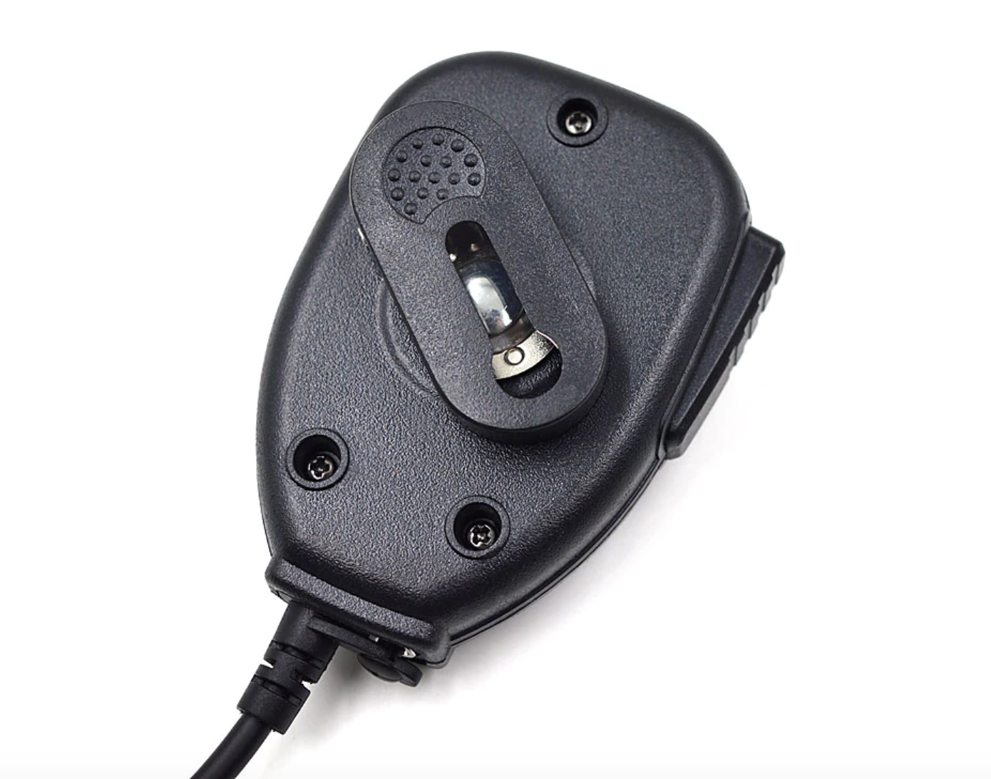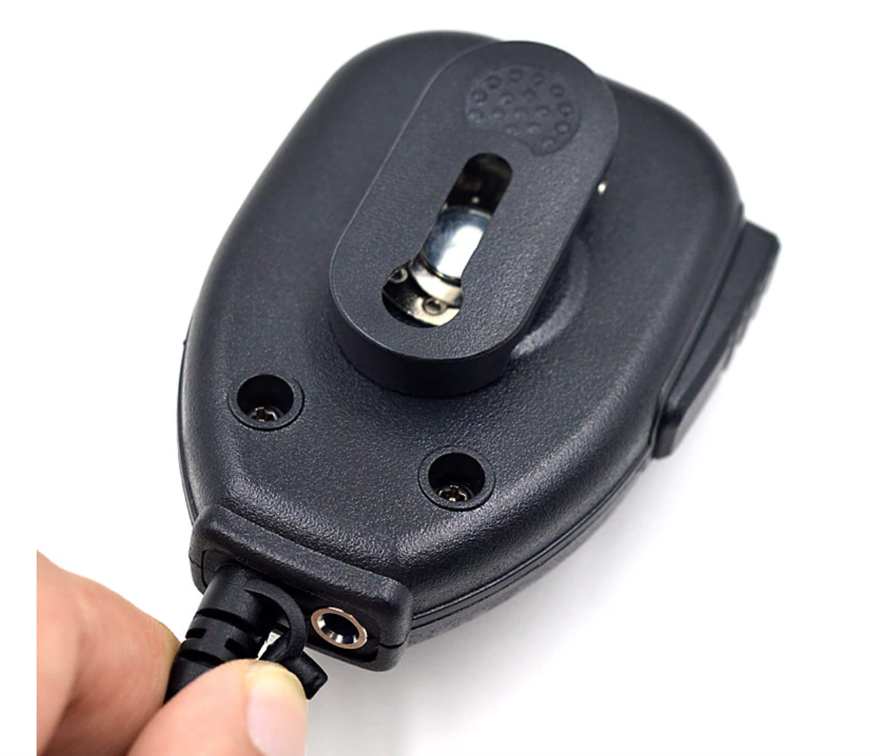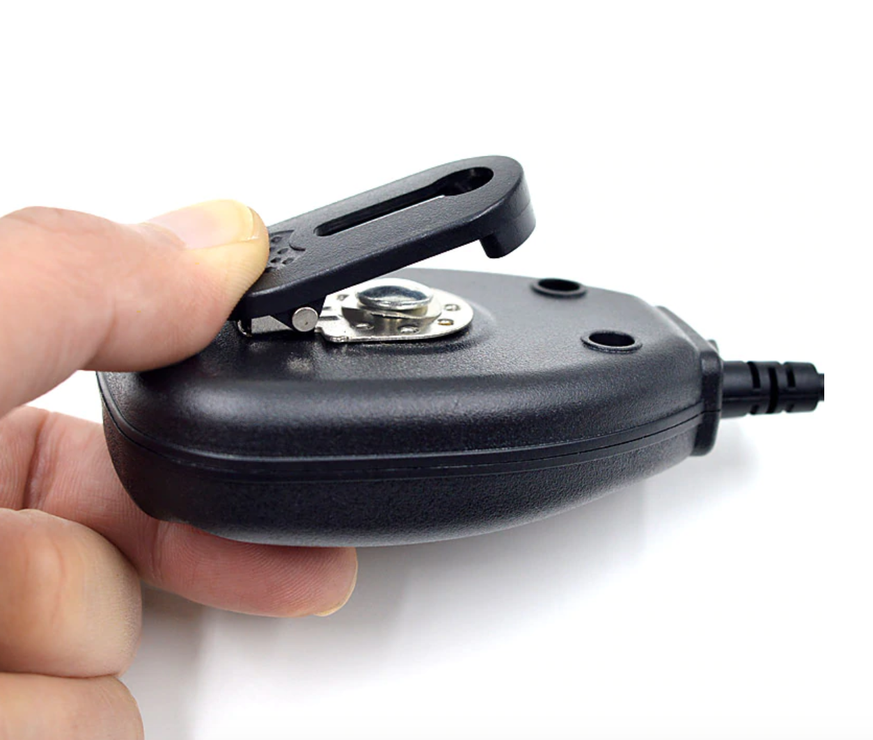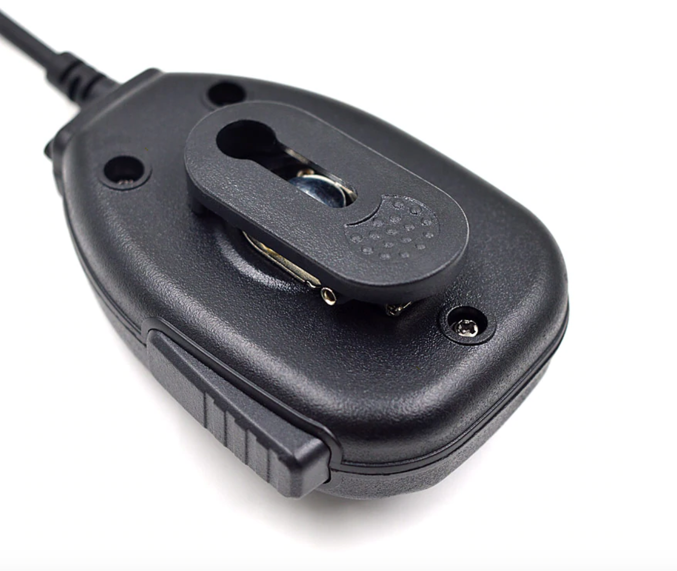 This product features a two way microphone and speaker with built in headphone jack for headset connection push to talk (PTT) switch. This product also features a built in clip to enable the user to attach the microphone speaker PTT discreetly or in a position best suited to the users needs.