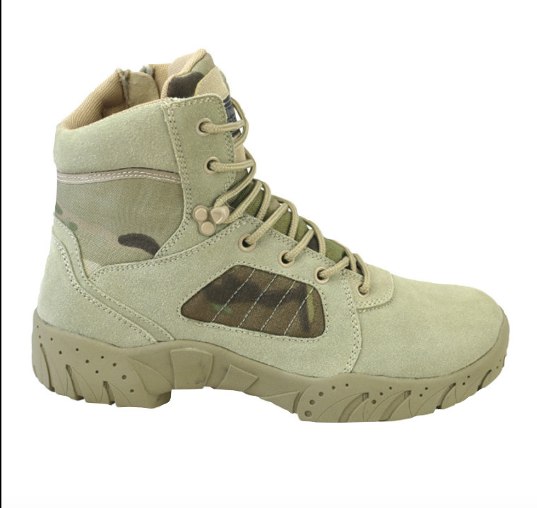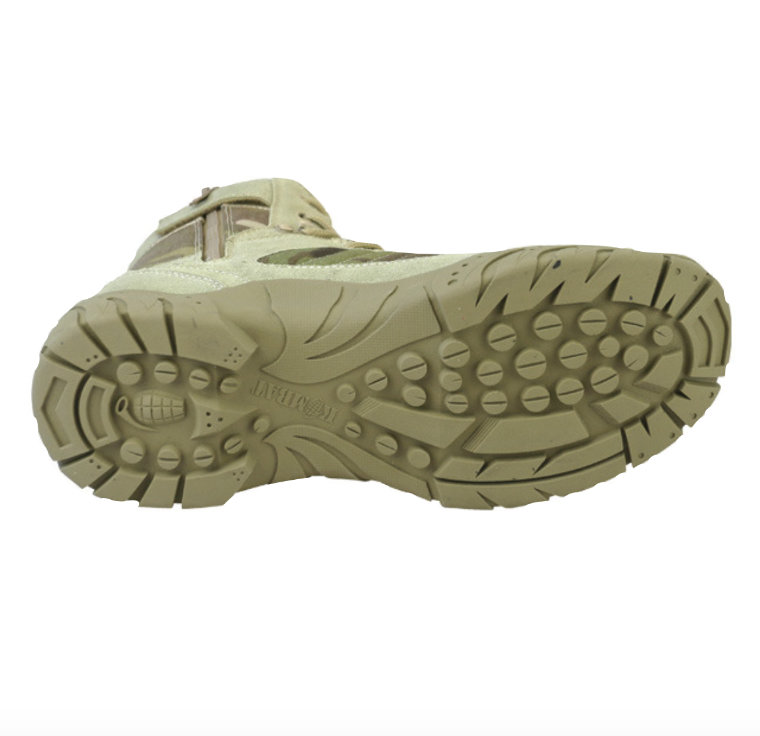 • Tan suede and nylon boot • 1000D Multicam Nylon • Heavy duty fast access SBS side zip • Patented Kombat UK sole unit • Oil resistant sole with steel shank • Nylon laces • ABS speed lace system • Rubber heel • Removable EVA inner sole