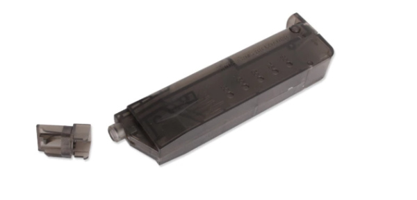 This type of speed loader offers the user large capacity bb storage of 90 rounds. The quantity if BBs the unit can hold is perfect for users running mid capacity magazines and pistol magazines for fast speed loading in game. This product is also suitable for those that operate Moscart multi barrel 40mm grenades. This process enables the user to load Moscart shells more quickly due to the high capacity storage of the speed loader.