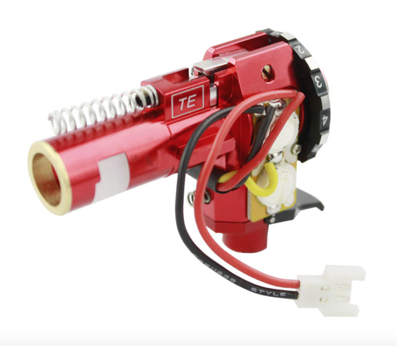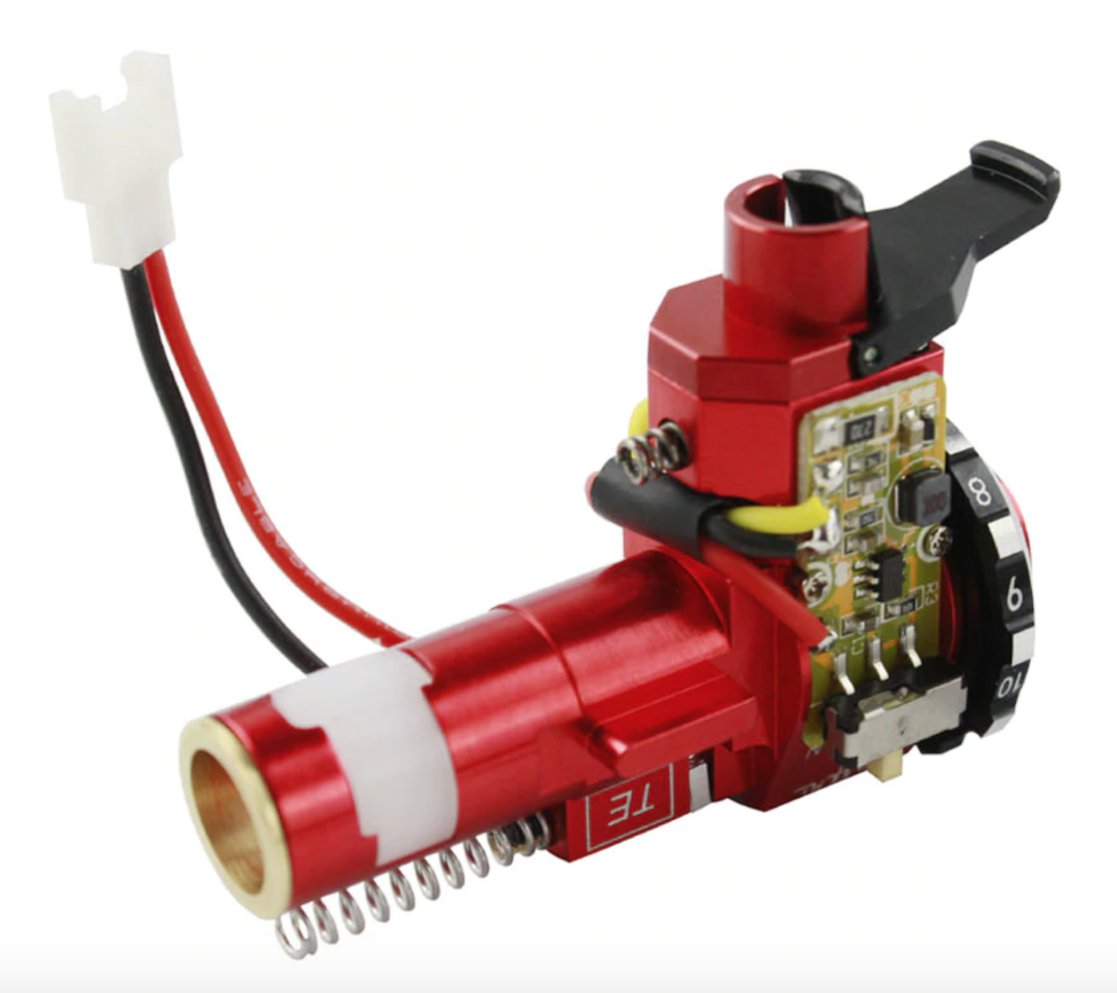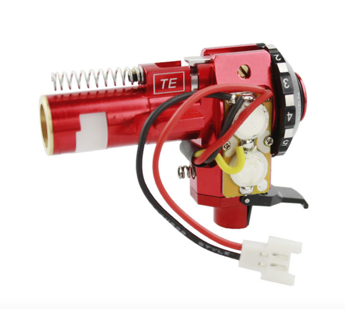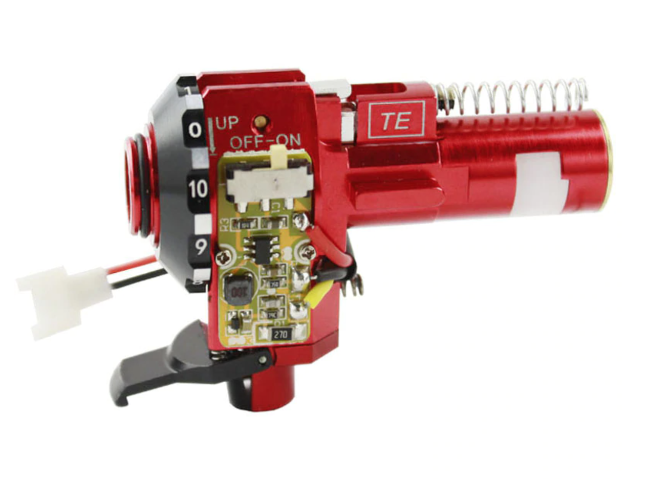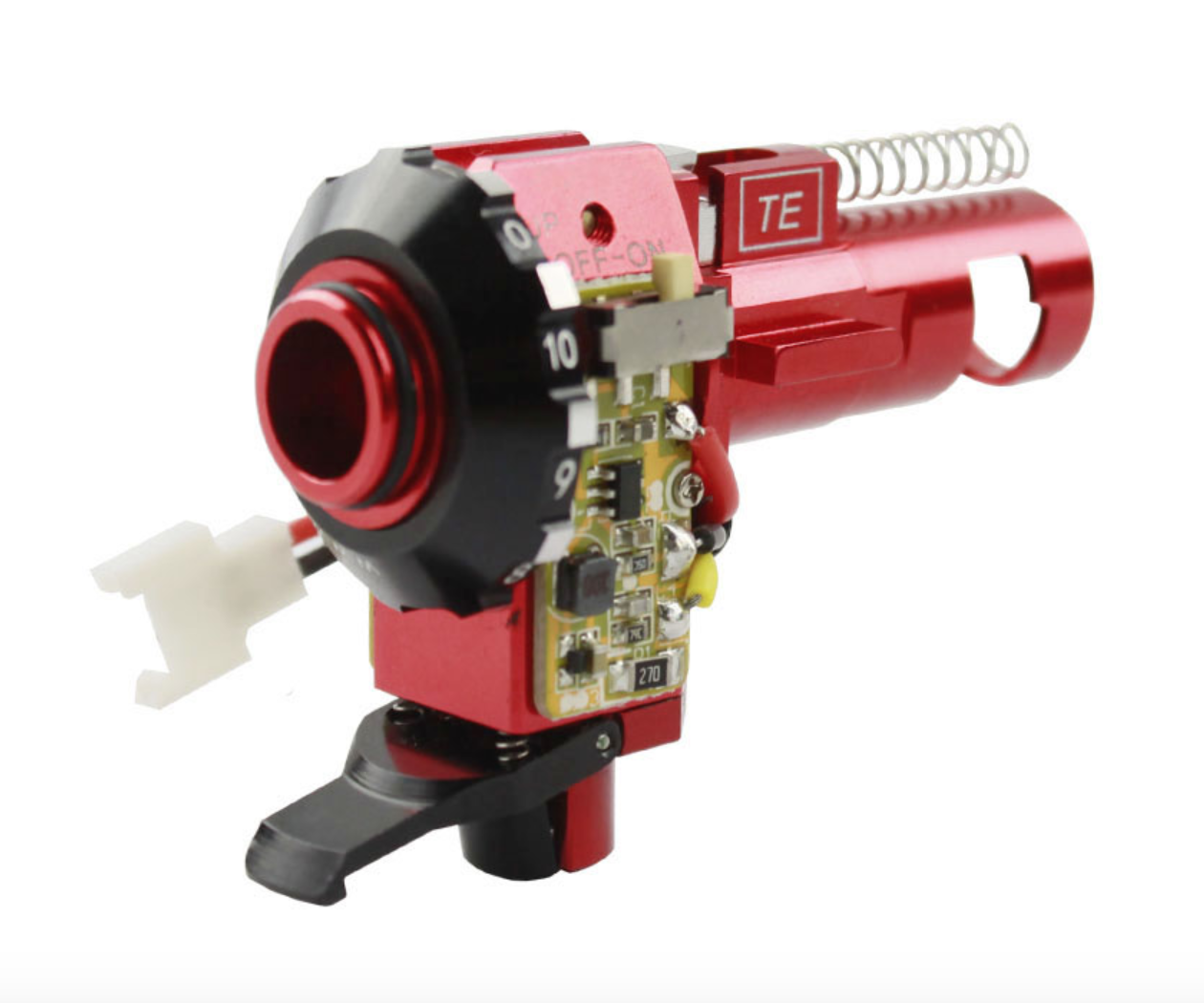 This LED Tracer Hop-up Chamber TE unit has a precision rotary dial design enabling the user to fine tune hop-up adjustments. This item features re-engineered hop-up levers and concave nubs to work best with R-hop and Standard-Hop keeping the BBs on target, straight and accurate on every time.