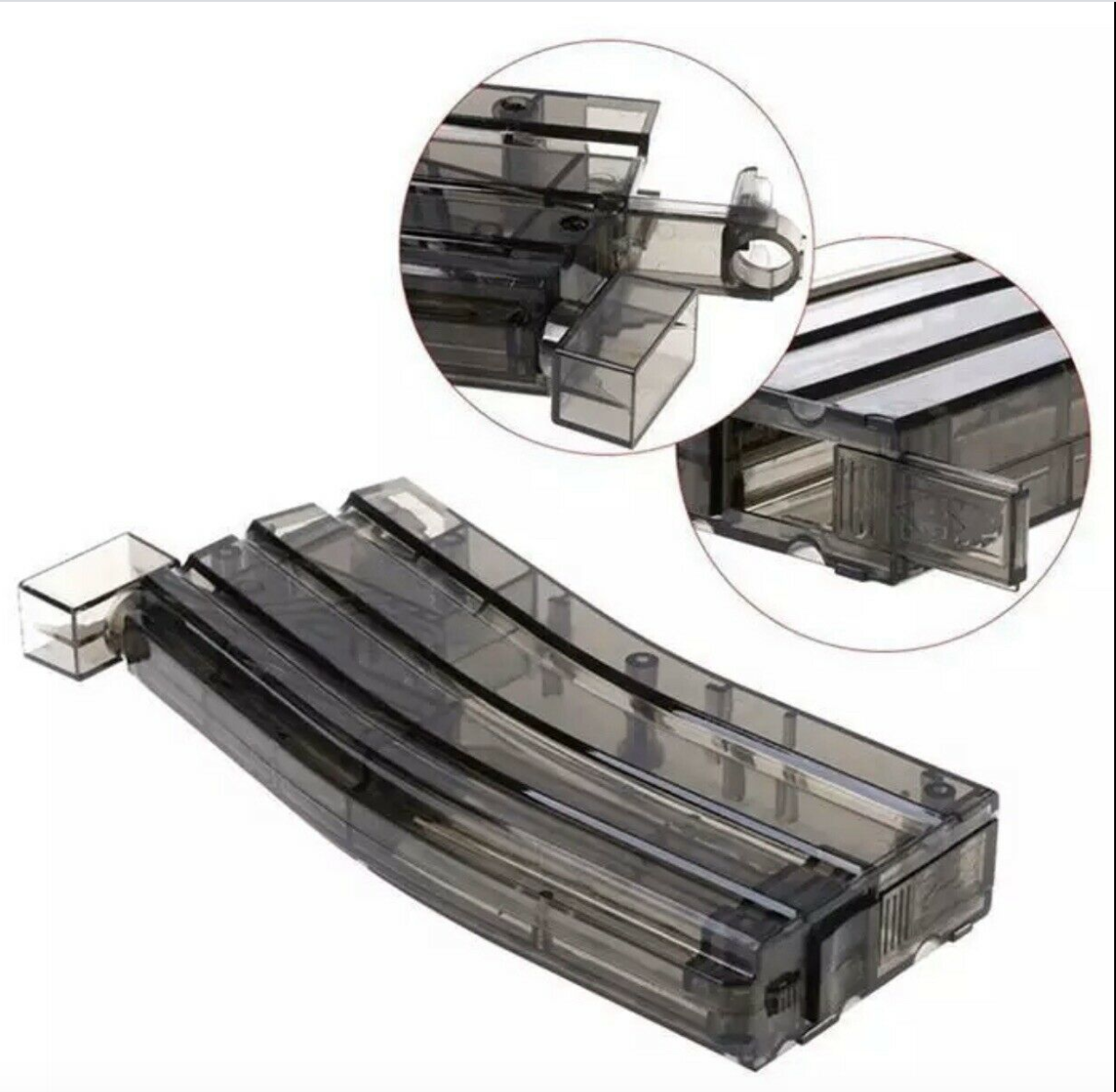 This type of speed loader offers the user an extremely large BB loading capacity and BB storage of around 500 rounds in an m4 style loader. The quantity of BBs the unit can hold is perfect for users running mid and high capacity magazines and also pistol magazines for fast speed loading in game.