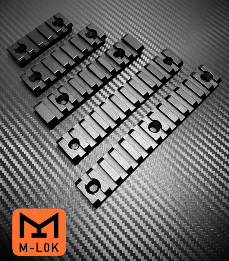 Tactical Heavy Duty full Aluminium Alloy Airsoft M-LOK Rails for 20mm Picatinny Weaver RIS RAS Rail fitments in sizes 5/ 7/ 9/ 11/ 13 Slot.