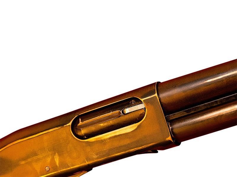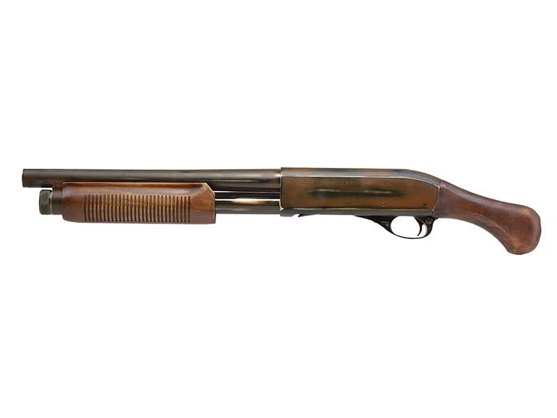 The APS MK3 ‘Douchebag” Shotgun is named for its large size and hardwood design, which gives it the appearance of a villain’s weapon. Made from wood with a battleworn finish, it has an authentic, aged look that makes it an ideal addition to any collection. The realistic, weathered painting adds to its authenticity. The pump-action single-shot rate of fire includes a shell capacity of 4 + 1 rounds. The shotgun’s length is 64 cm, and it weighs 2 kg.