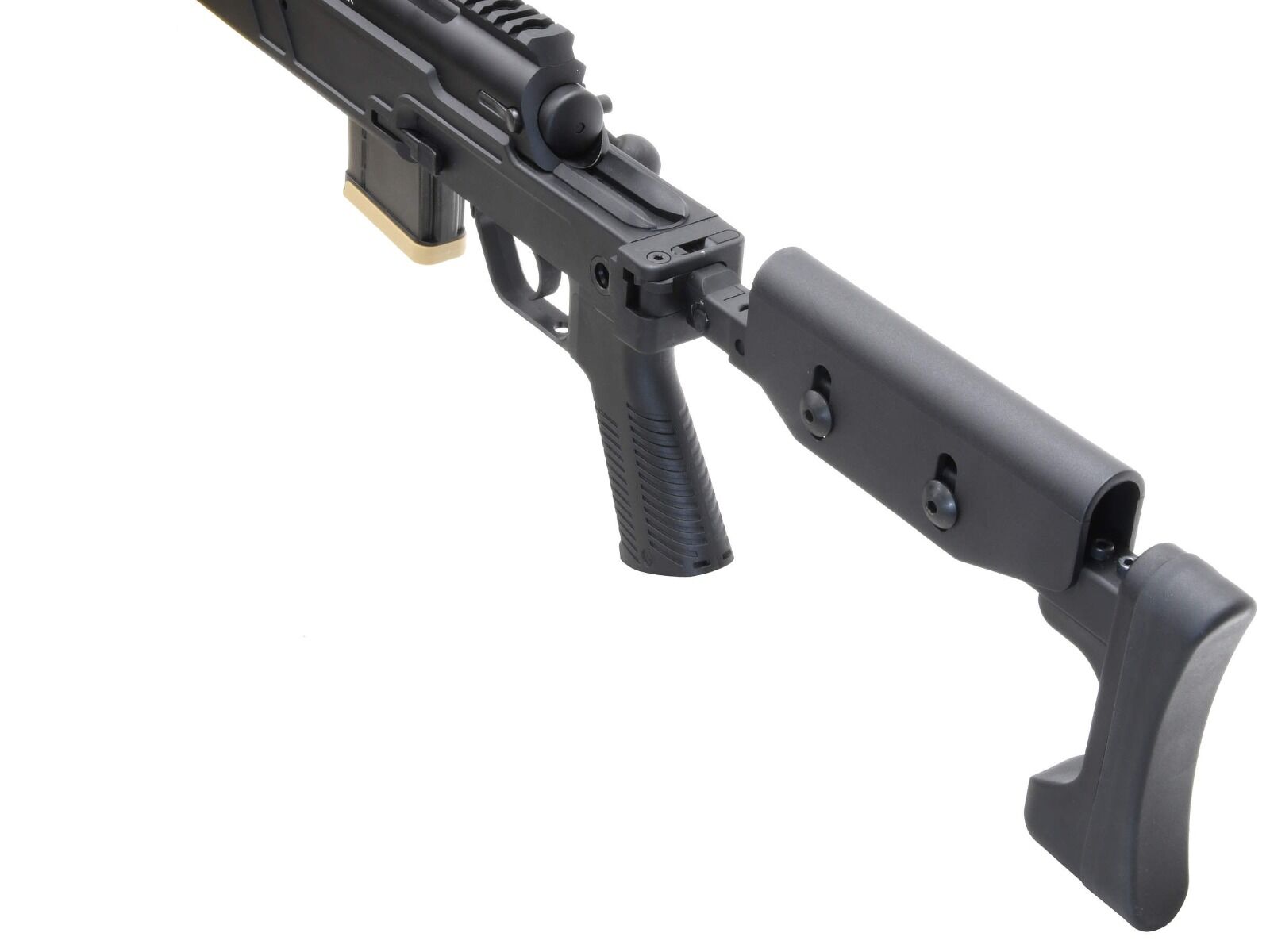Fully upgraded out of the box, including: Steel Cocking Handle, Steel Cylinder / Action, Steel 90 Degree Steel Trigger, CNC Machined Aluminum Piston Set, CNC Machined Stainless Steel Spring Guide