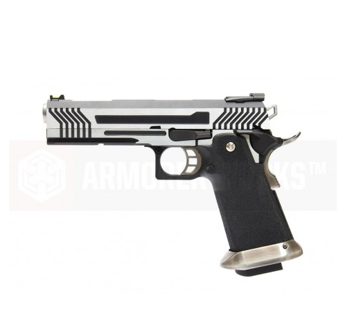Armorer Works the newest release with the best features you’ll ever look for on a pistol. It features a customized, ported, lighter, skeletonized HI-CAPA slide, hammer, and trigger. The gun also comes pre-assembled with a full metal striker head with an integrated lower accessory rail for an aggressive look.
