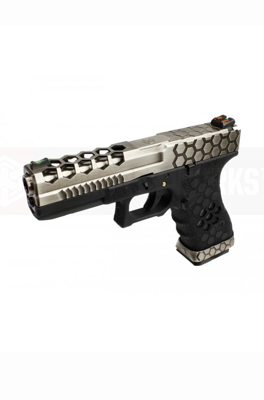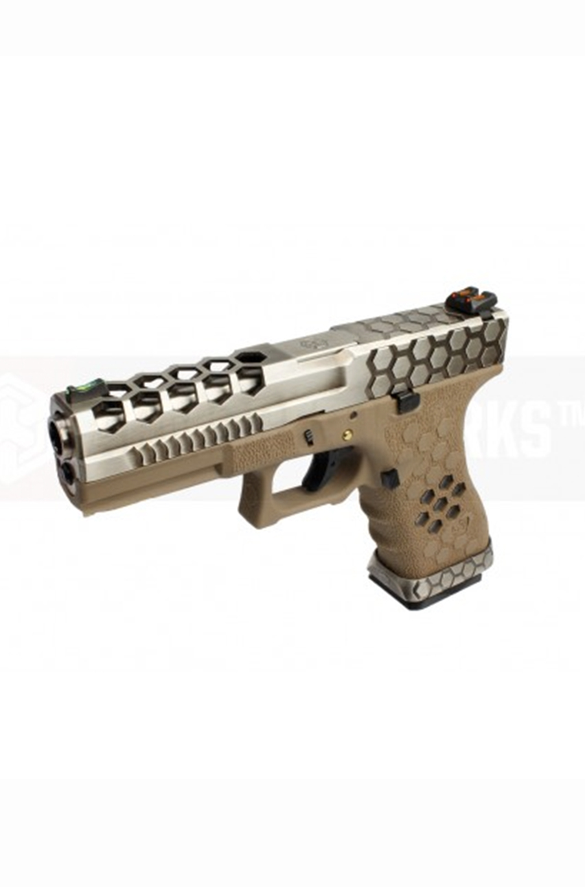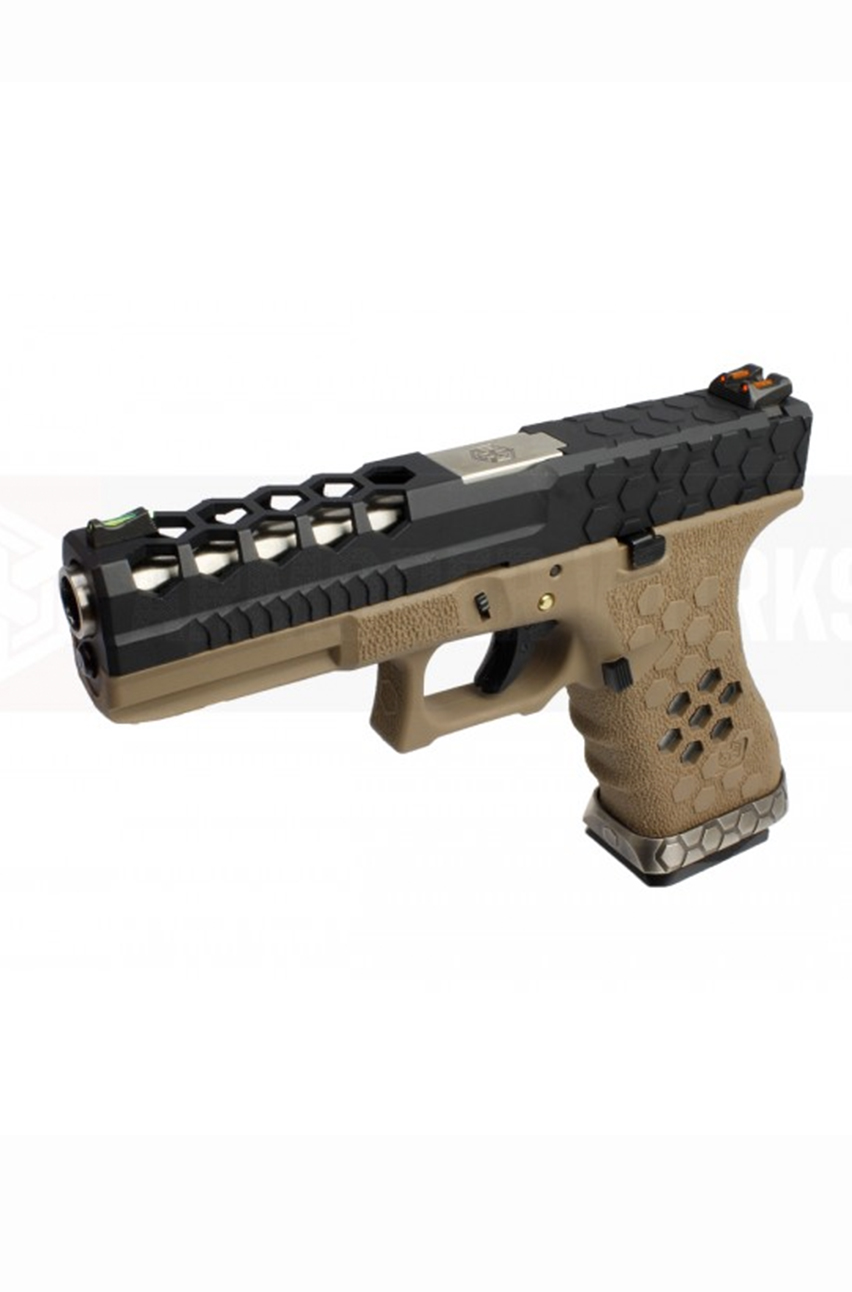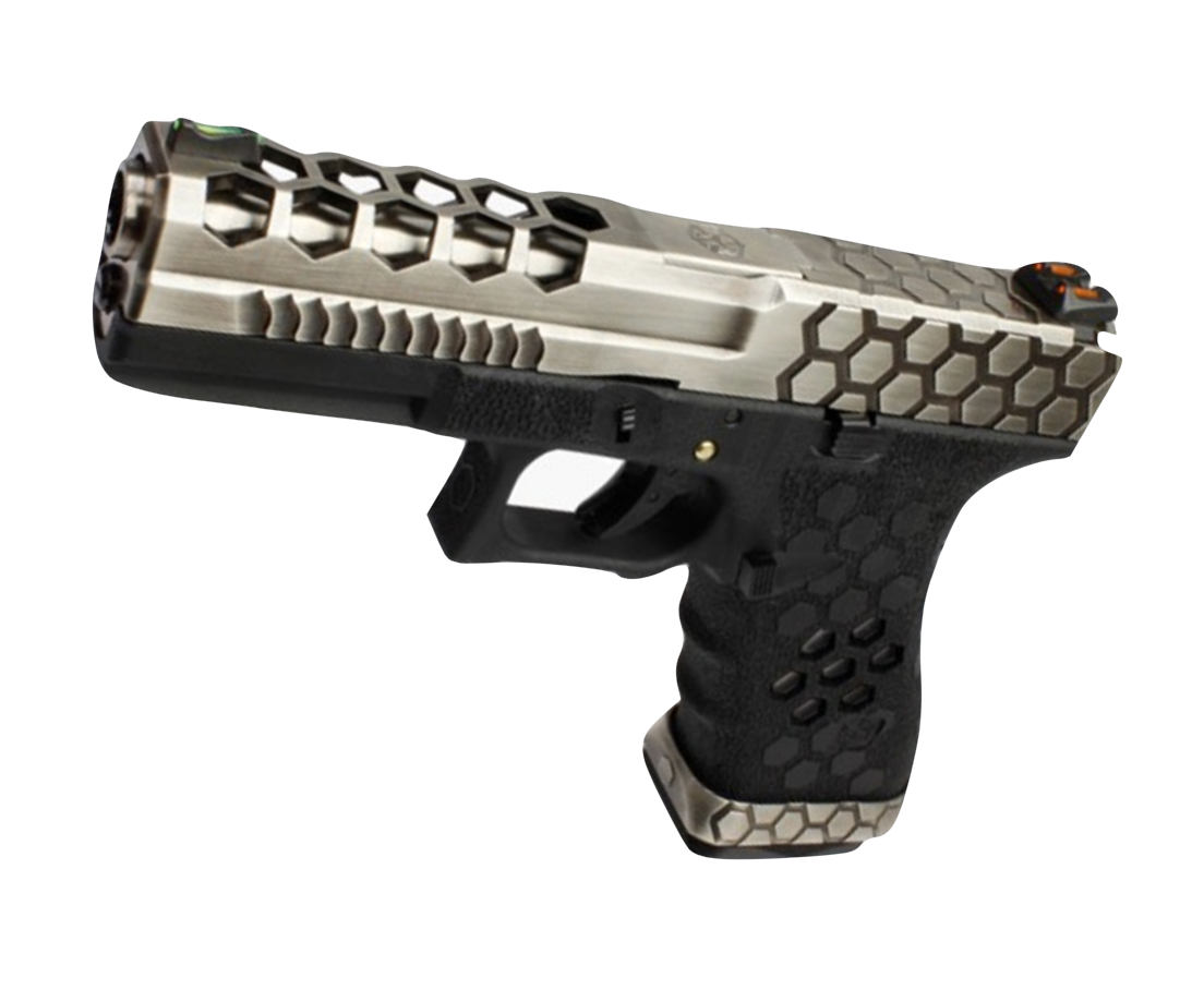 AW Custom is proud to announce the VX Series Hex Cut pistols, a brand new range of pistols featuring our signature hex cuts and hex porting to reduce overall weight of the pistol in addition to providing an aggressive gripping surface. Whether you’re putting this pistol through it’s paces at an IPSC/Action Air competition, or skirmishing it, this pistol will consistently outperform the competition, putting shots downrange accurately, and with blistering speed