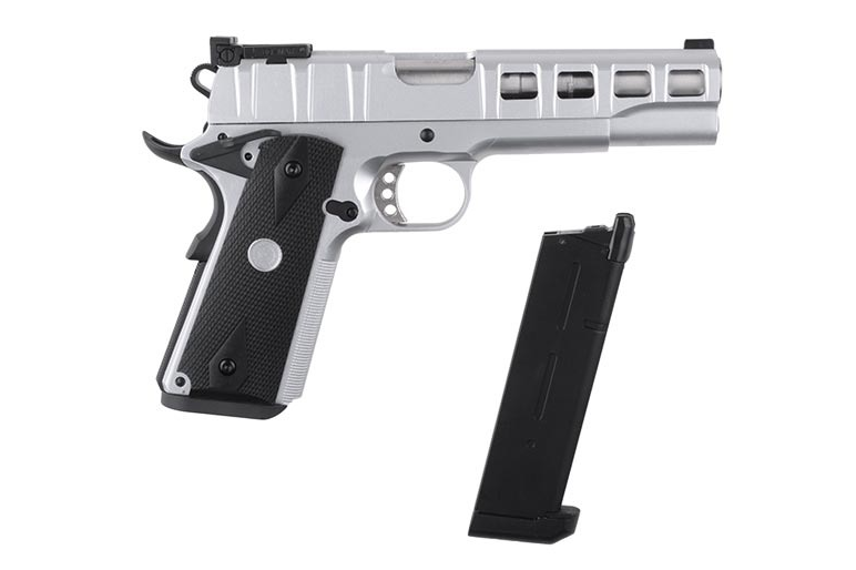 The replica is equipped with a double-sided, winged safety that locks the trigger mechanism and prevents accidental discharge. Access to safety is very simple both for left- and right-handed people – the mechanism lever is within the range of a thumb. This model also boasts functional, rear, pressure safety. It forces an appropriate grip on the replica in order to fire a shot, similar to the original live firearm.