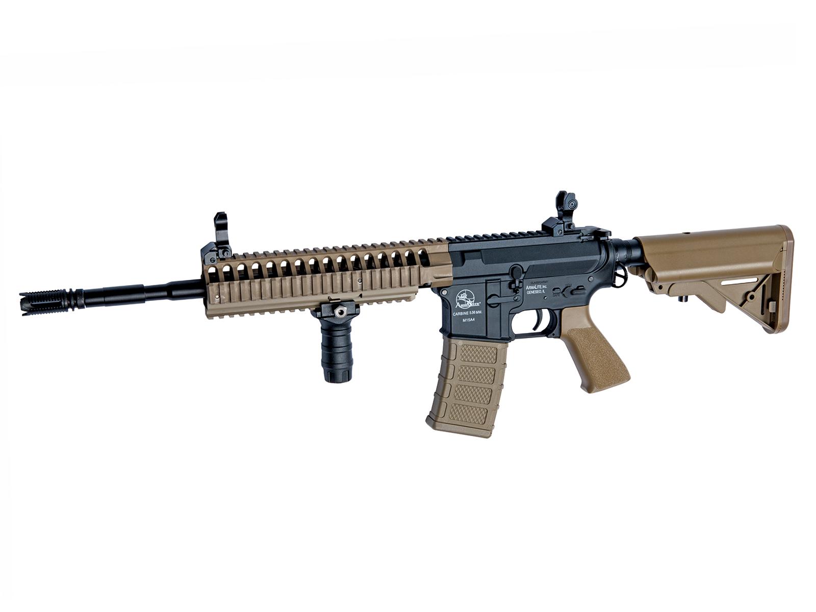 The expert eye will notice that the new Armalite series offers three different upper receiver designs, one in metal and two in fibre-reinforced nylon as well as four different front guards. This results in four different configurations in either all black or black with desert tan fixtures, for a total of seven models to choose from.This is the ranger version features a heavy-duty designed receiver in fibre-reinforced nylon and two-piece quad-rail for a tougher look.