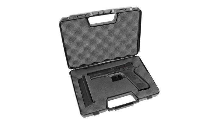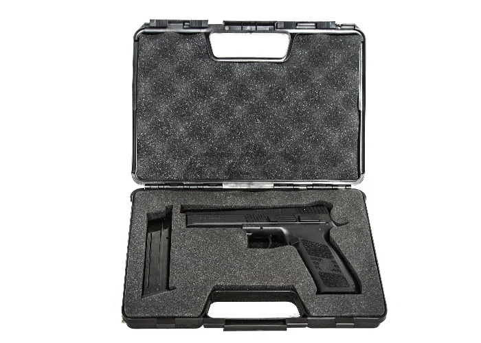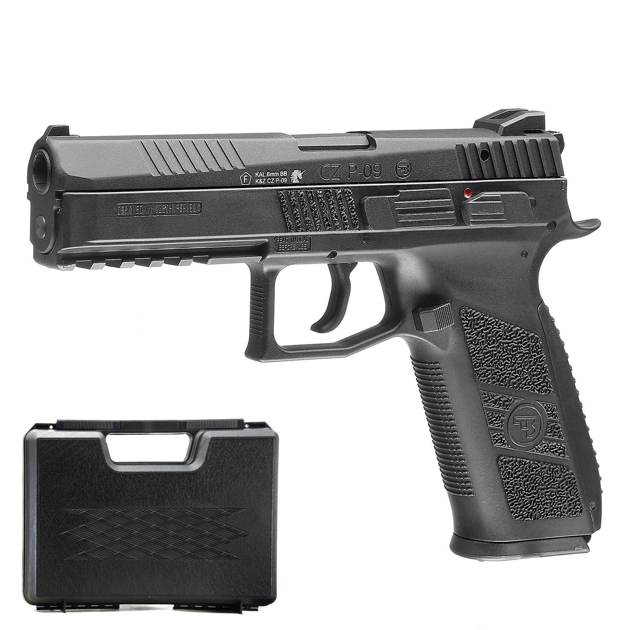 The CZ P-09 is a full-size tactical Airsoft pistol with an integrated rail for mounting light and/or laser. Manufactured under license from CZ, this airsoft gun is designed from the original technical drawings, resulting in a realistic look and smooth handling. Its blow-back function makes the metal slide move with every shot fired, creating strong recoil, and adding to the shooting experience. The serious operator will appreciate the smooth trigger pull, add to this a 3-dot sight system that gives the shooter a quick and easy target acquisition, and the result is a great new Airsoft gun that is suitable for all types of Airsoft play. Each Airsoft pistol features authentic CZ markings and is delivered in a solid plastic carry case with cut-out foam inlay, with room for additional magazines, ideal for safe transportation and storage.