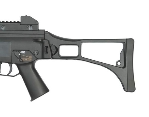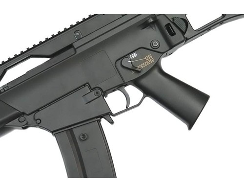 Semi- and full-automatic electric assault rifle – the SLV36 offers many different configurations to suit your gaming needs. This compact Sportline model offers a long top picatinny rail to mount scopes or dot sights if you feel like adding to the standard iron sights. The SLV36 also has a front rail to mount laser, light, front grip etc. The gearbox and gears, of course, are all metal and it has an adjustable Hop-Up system. The package includes battery, charger and a high capacity magazine.