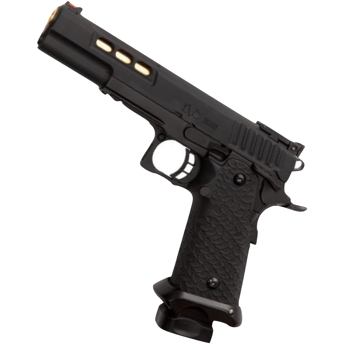 Borrowing heavily from the classic design concepts of the venerable 1911 STI created the up to date 2011 model. Using the 2011 as the base the DVC 3 takes the platform to a new level. The advanced custom frame, flared magwell, competition style sights and stippled grips enable faster shooting, fluid reloads and faster target acquisition. Precision lightening cuts in the slide aid recoil while custom serrations allow a firm and rapid grasp when charging the pistol.