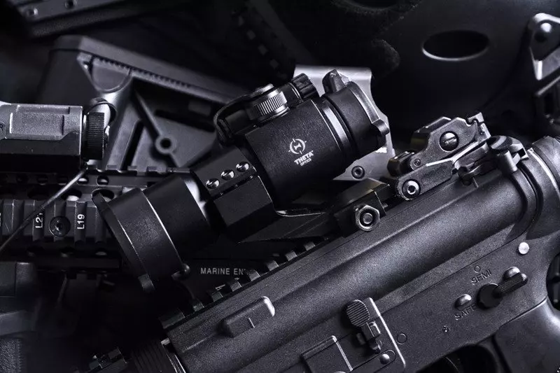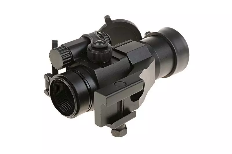 Theta Optics™ Battle reflex sight is enclosed in a metal casing and powered by three AG13 batteries as well as allows to use a green or red dot during both day and night operations. Can be smoothly regulated vertically and horizontally. It features several brightness options. Mounted on a standard 22mm RIS rail, the sight allows for rapid and precise aiming.