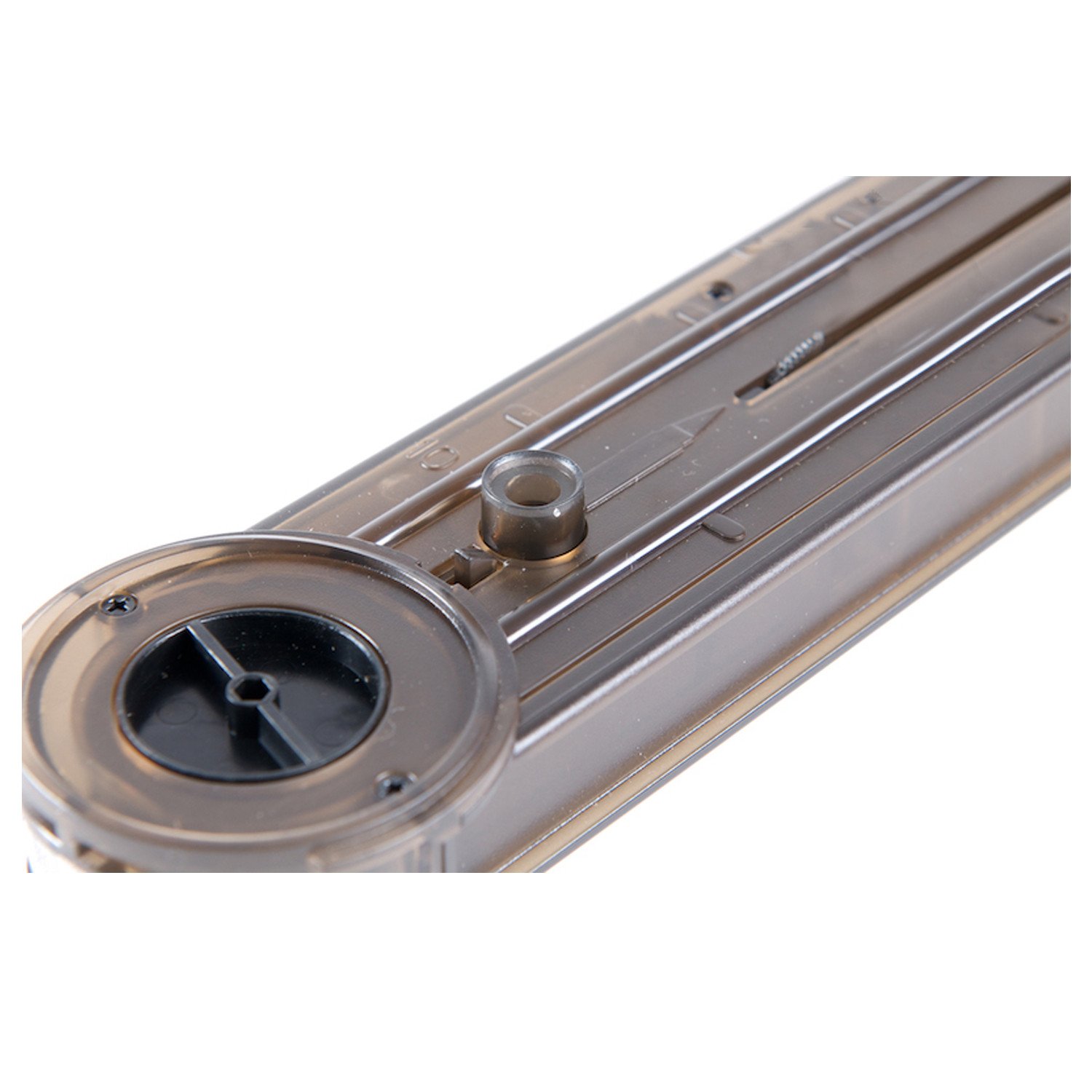 The top receiver is constructed from machined metal parts and high-strength polymer. The entire gun gives off an aura of sturdiness. On the right side of the red dot sight is a small metal CNC rail section for mounting a flashlight or a laser or other accessory to help with aiming. Internally, Classic Army has redesigned their gearbox with 9mm bearings and a quick change spring system allowing the user to go from field use to CQB legal. The metal hop-up chamber allows for a better air seal over existing plastic hop-up chambers. This CAP90 also includes a 300 Round Magazine constructed from semi-transparent polymer just like the real steel version magazine, enabling the user to check the ammo level quickly and easily. Overall, this is another well-built airsoft gun from Classic Army and a nice addition to their P90 line.