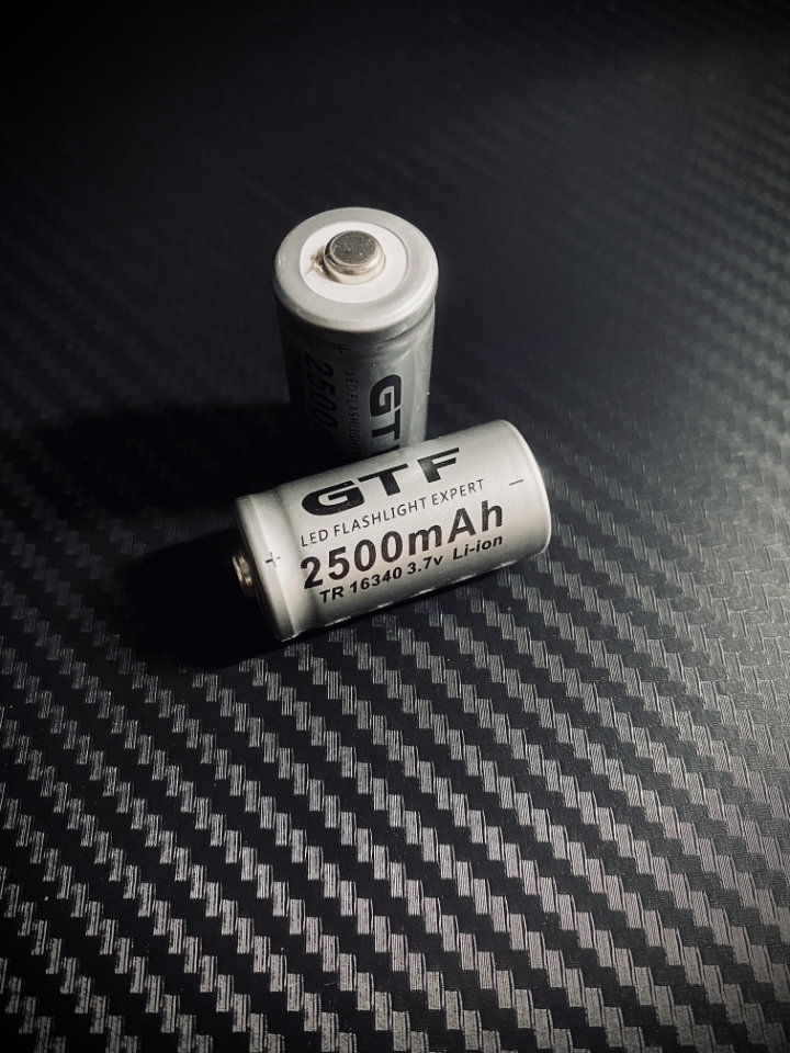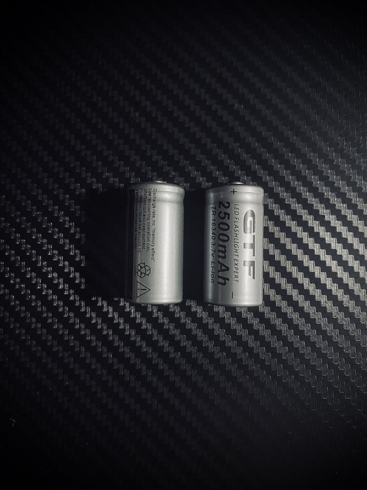 Package includes: x2 GTF 2500mAh CR123A TR16340 3.7V Rechargeable Li-ion Batteries