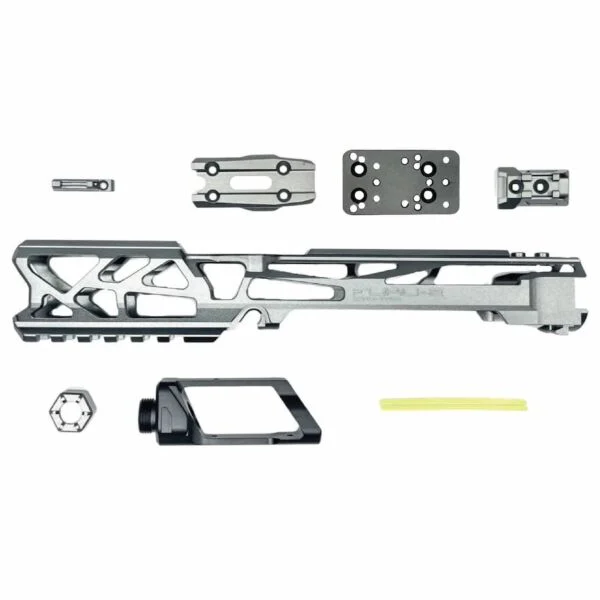 Package Contents : CNC Upper *1 CNC Bucket *1 CNC Cover *1 CNC Front sight *1 CNC Rear sight *1 CNC RMR Riser *1 (50.5mm*28.3mm*3.0mm) (for more Red-dot options) CNC RMR Mount Decorative Cover *1 Green fiber (2mm*60mm) *2 Stainless steel Hex Socket Flat Head Cap Screws : m2.5×4 *1 m3x5 *6 m3x8 *6