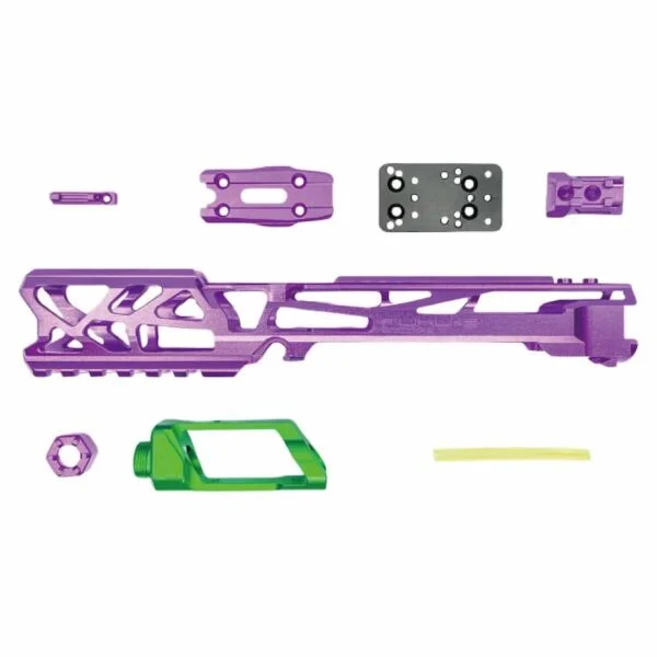 Package Contents : CNC Upper *1 CNC Bucket *1 CNC Cover *1 CNC Front sight *1 CNC Rear sight *1 CNC RMR Riser *1 (50.5mm*28.3mm*3.0mm) (for more Red-dot options) CNC RMR Mount Decorative Cover *1 Green fiber (2mm*60mm) *2 Stainless steel Hex Socket Flat Head Cap Screws : m2.5×4 *1 m3x5 *6 m3x8 *6