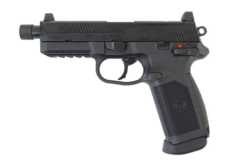 CYBERGUN FNX-45 GBB AIRSOFT PISTOL BLACK was manufactured by CyberGun in Taiwan by the acclaimed VFC. Thanks to a full license from the manufacturer of the live firearm original, one can feast one’s eyes with a set of original markings, which were engraved on the replica. FNX .45 is a gas-powered replica (Green Gas), which is characteristic of its uniquely large realism as well as precise craftsmanship. One just wants to fire an FNX .45.
