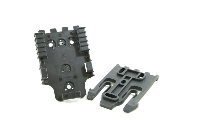 Injection molded nylon is used in the construction of our quick locking system. The receiver plate can be attached at different angles according to user preference. The QLS allows for a quick transfer of gear between attachment points such as;