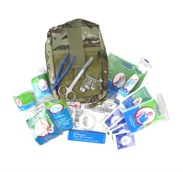 • Fold out main compartment with secure elastic straps that are designed to fit all current issued medical kit