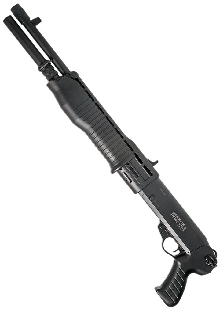 The SPAS-12 3-burst Sportline shotgun uses realistic-looking shells and is made with a metal outer barrel. The full-size SPAS-12 Shotgun is known to be the ultimate velociraptor repellent but is suited for close-quarter combat as well.