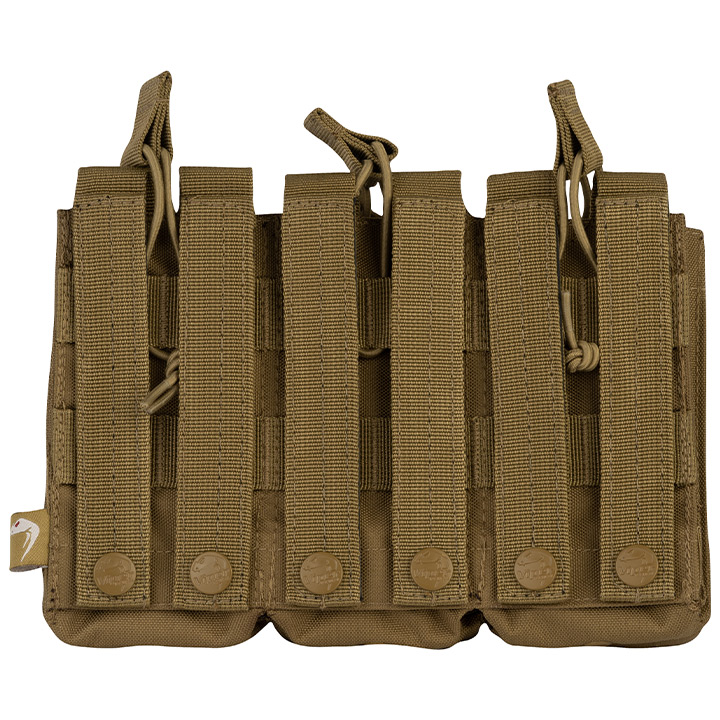 The Viper Duo-Mag Pouch (Treble) enables the user to stock magazines on most MOLLE panels. The 600D Cordura enhances the smooth functionality while magazines are securely held by quick release bungee retainers.