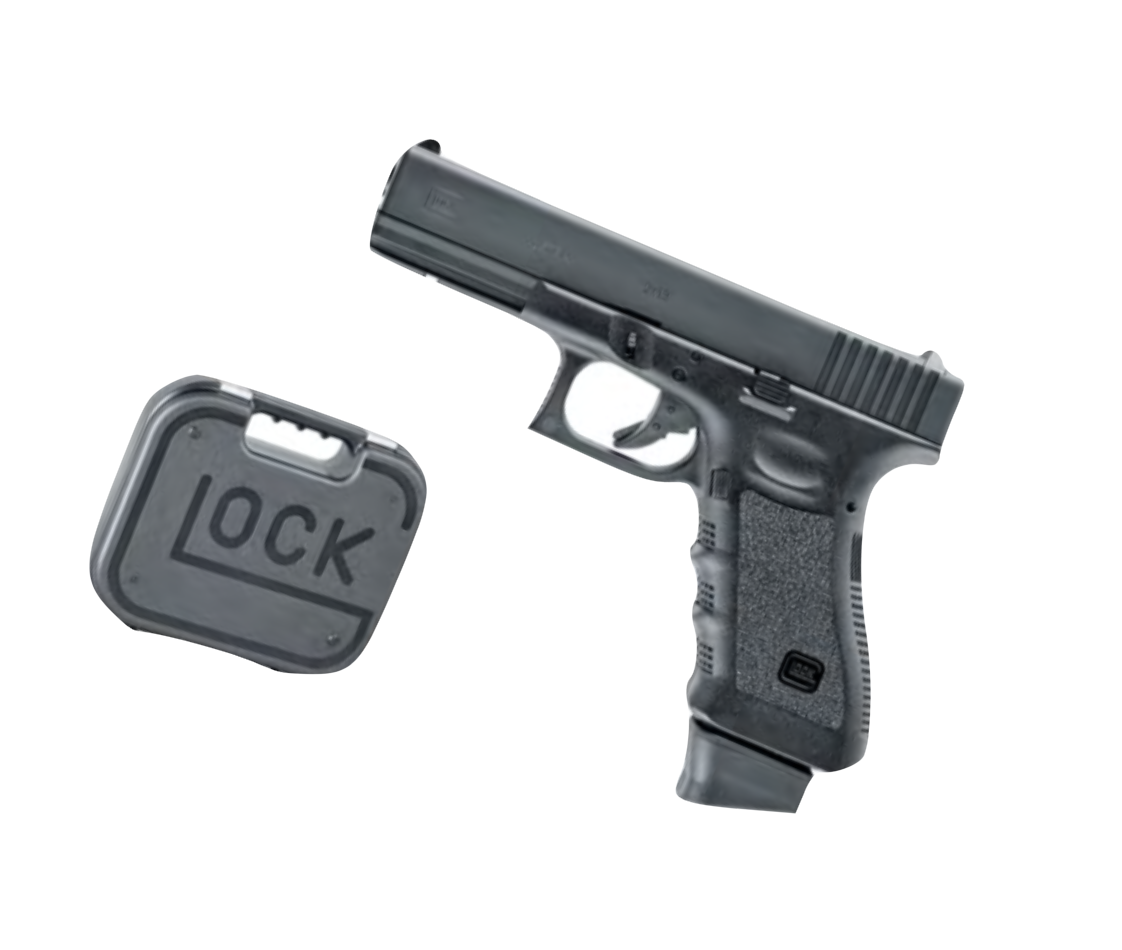 Proverbial GLOCK perfection has come to CO₂-powered airsoft pistols. This replica of the GLOCK 17 Deluxe has quality written all over it. The highlight is its CNC-machined aluminium slide, which brings the total weight up to an impressive 674 g. Strip it like the original? No problem! And the adjustable shoot-up system ensures that 6-mm pellets have stable trajectories all the way to their target. The blowback produces a noticeable recoil effect – a delight for airsoft fans each time a projectile leaves the barrel with an energy of up to 1 joule. Another highlight is the gun case manufactured by GLOCK in Austria, an ideal means of transporting this deluxe airsoft gun.