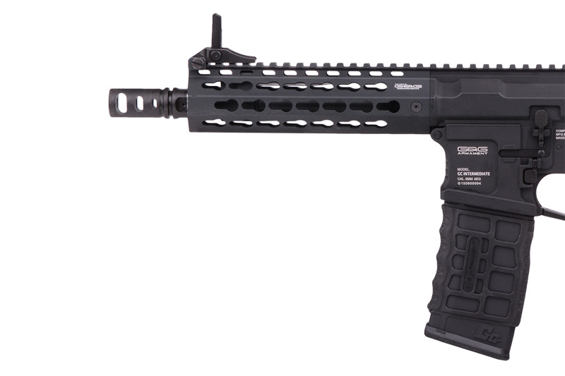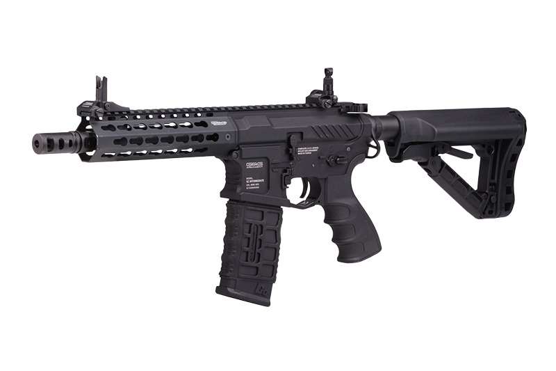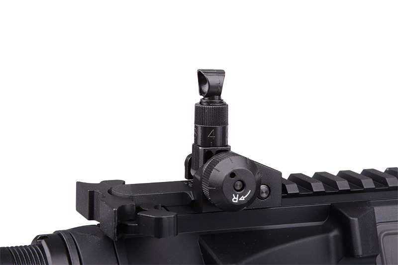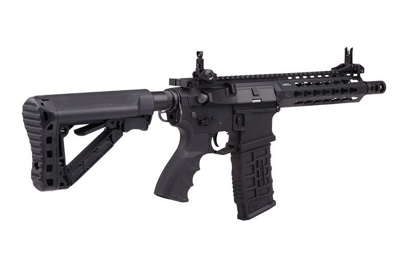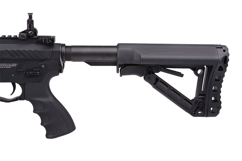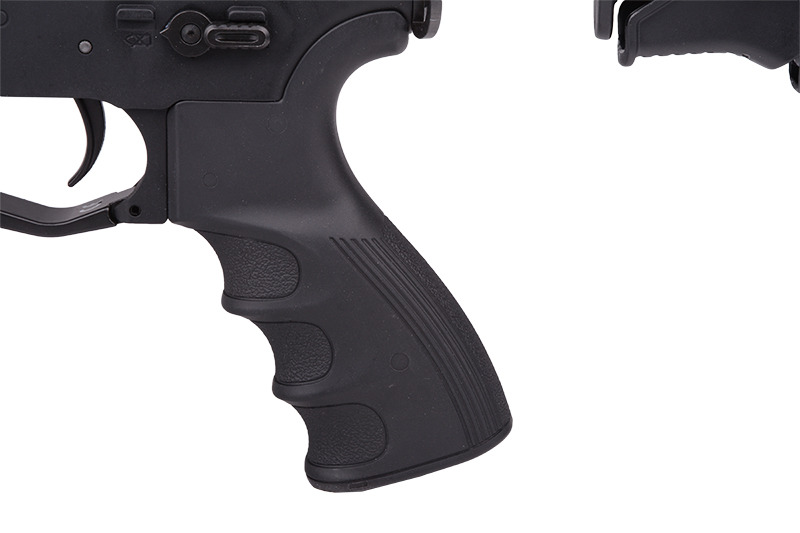 The replica has a telescopic stock with space for a battery. The stock is adjustable, which allows for customization of the length of the replica to the body type and preferences of the user. The pistol grip is profiled in order to provide the best possible hand placement. The flash hider sits on a 14 mm left-hand thread.