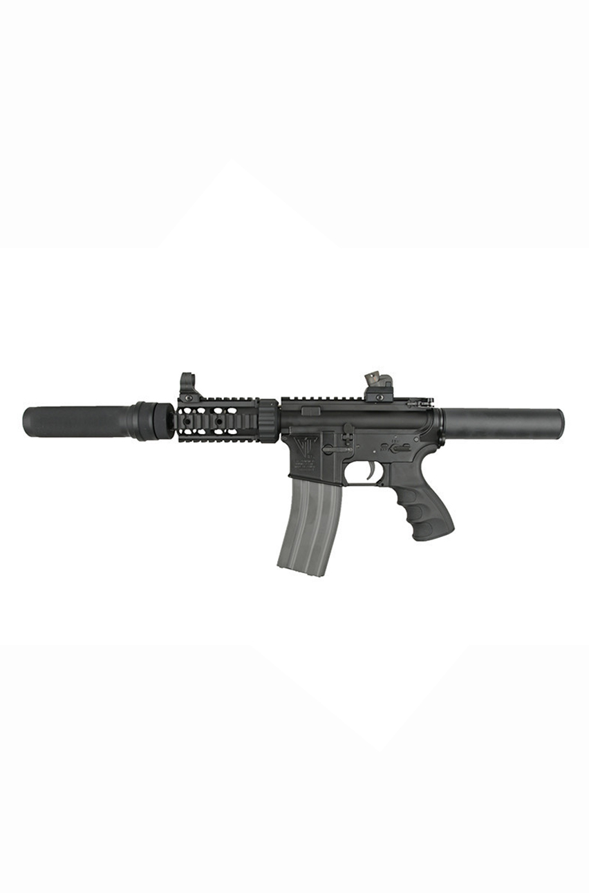 One of the new editions to the G&G Top Tech line is the TR16 CRW Canon. Closely related to its cousin, the G&G GR15 CWQ Wasp, this gun features tons of cool and unique features. Clocking in at about 340 FPS, this gun is perfect for any sort of indoor or close-range engagements. The body and rails are made from a high-density metal alloy and give the gun a very solid and rigid weight. The gun comes with an oversized 223mm long mock suppressor that has plenty of room to house a longer aftermarket barrel. The battery is located in the rear of the gun inside of the tube stock, which can house up to a 9.6v 1600 mAh brick type battery.