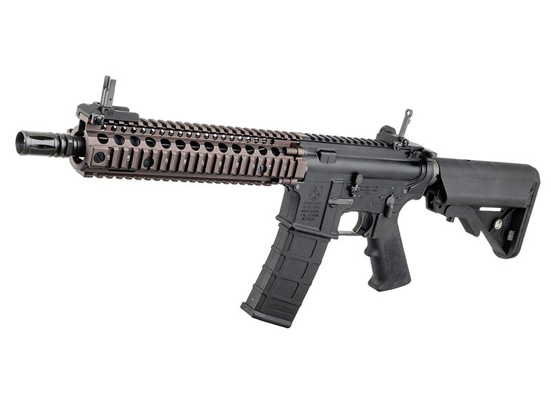 The GHK MK18 MOD1 GBBR is fully licensed by Colt. this model features full and authentic trades & markings. The gas system is superb and the felt recoil is extremely satisfying. Full metal construction and superb build quality by GHK without compromise to usability and versatility, overall lighter weight, when compared with other models on the market, making this gun a great weapon system.