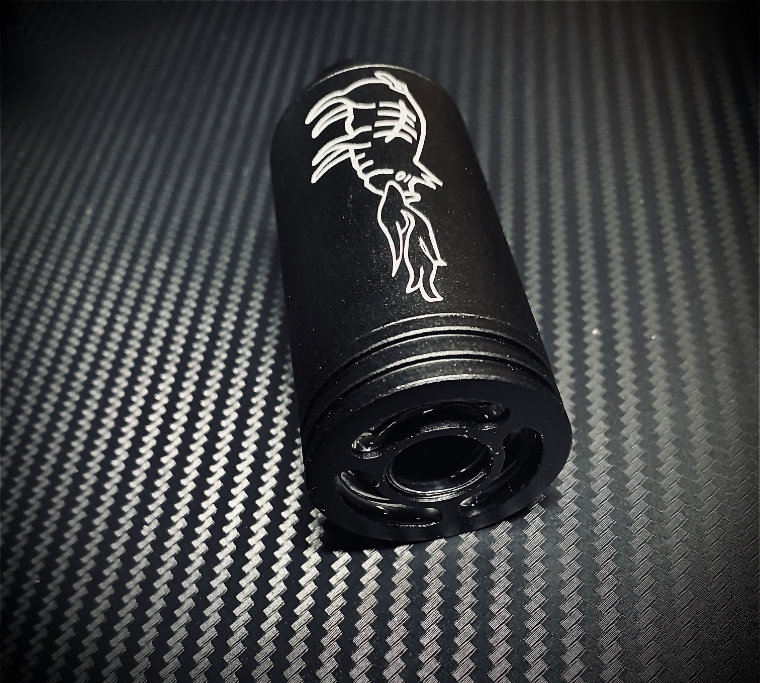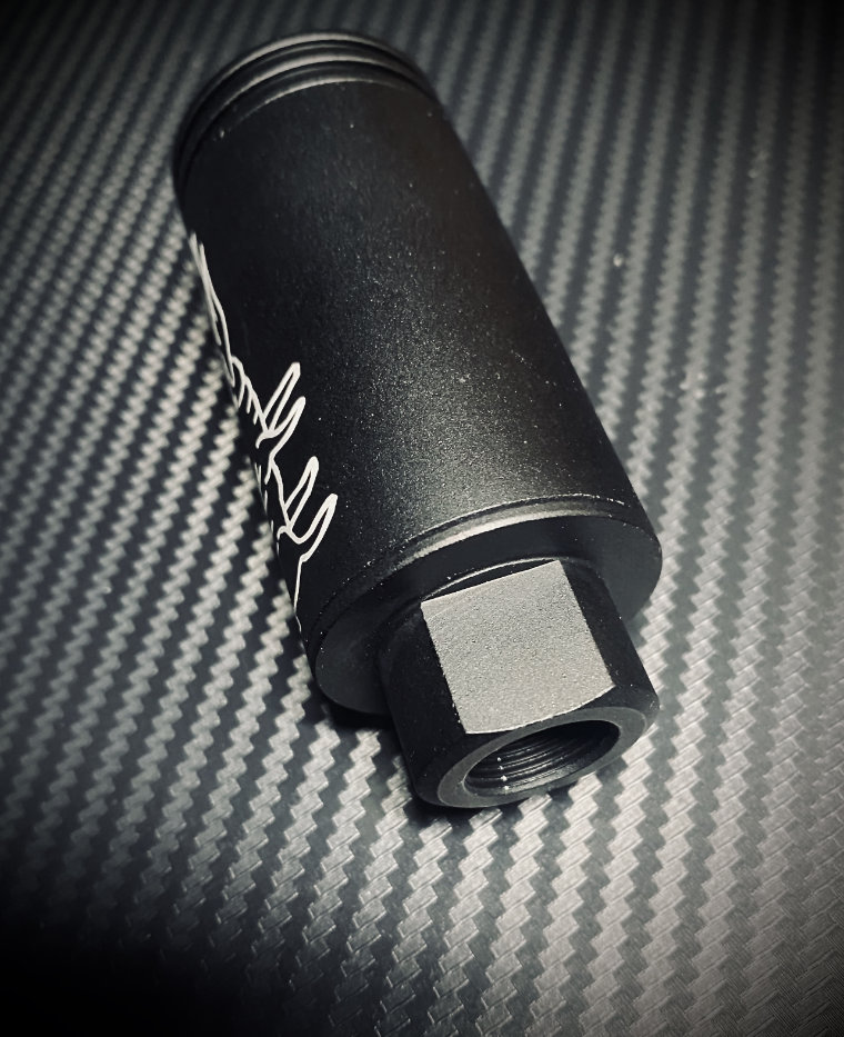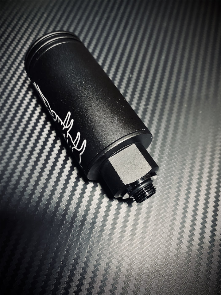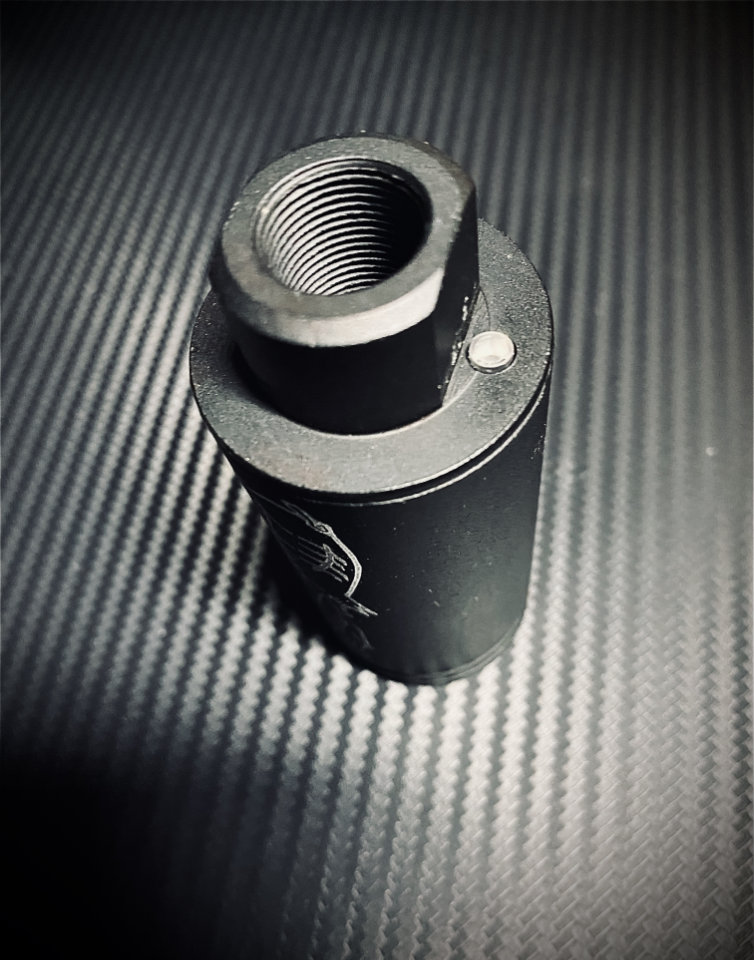 Low profile 14mm CCW Thread Adapter, which is now a replacement end cap rather than a large bulky adapter, meaning you can have a much more low profile set up than before. The unit weighs in at 74g which makes it ideal for installing on pistols, as a heavy suppressor/tracer unit can cause damage to the nozzle when firing.