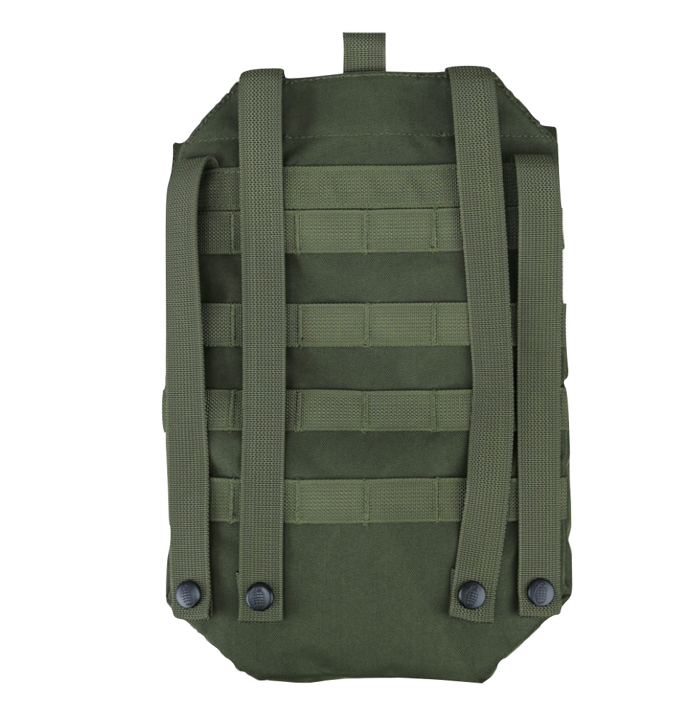 • Features 3 x elasticated magazine / utility pouches, 1 x extra large utility pouch and a hydration pack pouch to the rear of the panel