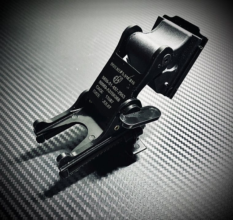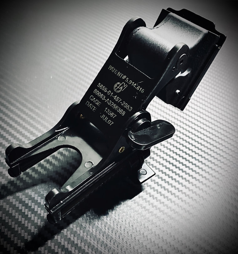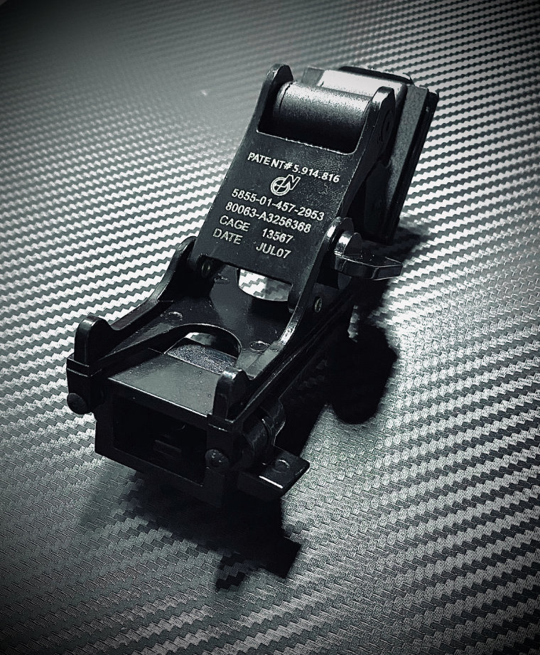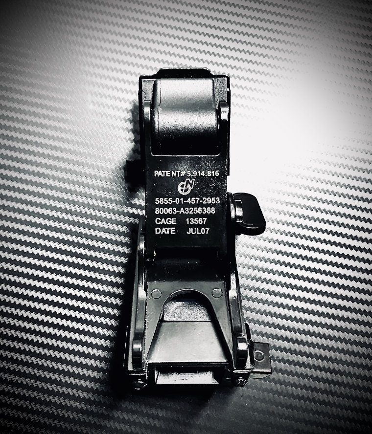 Rhino NVG bracket for mounting PSV-7 or PSV-14 on fast helmet plate. Full tilt flip position design for fast tactical use. Fully Adjustable arm angle NVG mount for improved focus. Compatible with PSV-7 or PSV-14 including most Dummy night vision goggles. Making this tactical Rhino Night vision goggle mount perfect for: