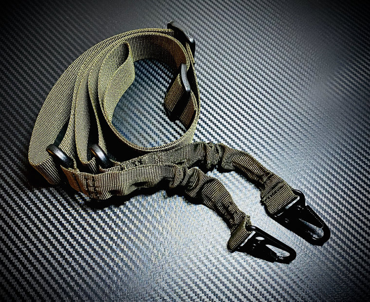 This sling also features a bungee section on each end. This feature enables the user to drop and switch from their primary to secondary weapon or alternative weapon with ease. The bungee section absorbs the shock of a dropped weapon allowing the shooter to quickly transition between weapons fast. This sling is perfect for those who are looking for a heavy duty, secure and comfortable sling that can be used with a Variety of weapon platforms.