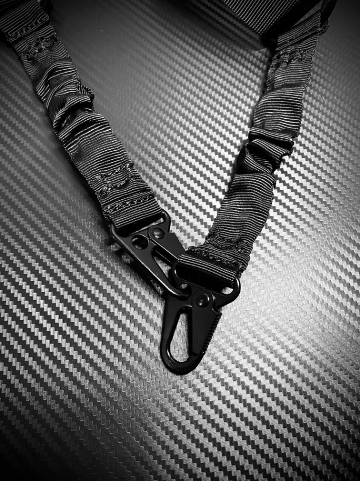 The heavy-duty tactical bungee sling can be used as a two-point sling and also a single point tactical sling. The heavy-duty sling features a NEW version with Heavy duty clasps featuring connection ports on both clasps enabling the user to connect each clasp together to create a single point sling.