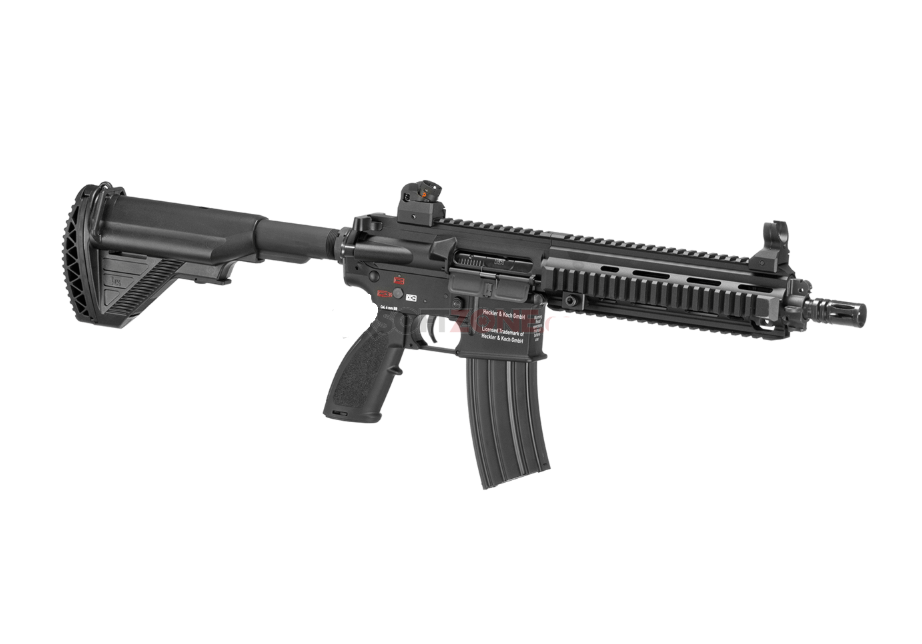 This first-rate replica of the assault rifle HK416 has all the essential features of an outstanding Airsoft model: Version 2 Gearbox with 7 mm bushings, ball bearing spring guide, the aluminum piston head, and a Hicap magazine made of steel. Close attention has been paid to detail, and top-quality materials like aluminum and high-grade plastic are used throughout. Functional parts are made of steel. The HK416 also sets new standards when it comes to handling. The bolt catch makes Hop-Up adjustment quick and easy.