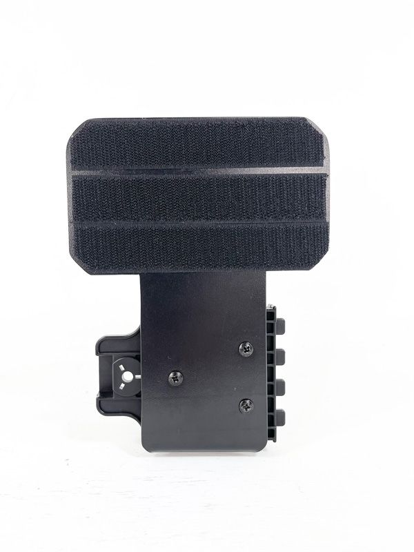 The mount features hook and loop Velcro on both sides to lock the mounting plate in place using your existing velcro on the inside of your gear. It has been constructed using 3mm Kydex to make sure the mounting plate stays strong with no unwanted flex.
