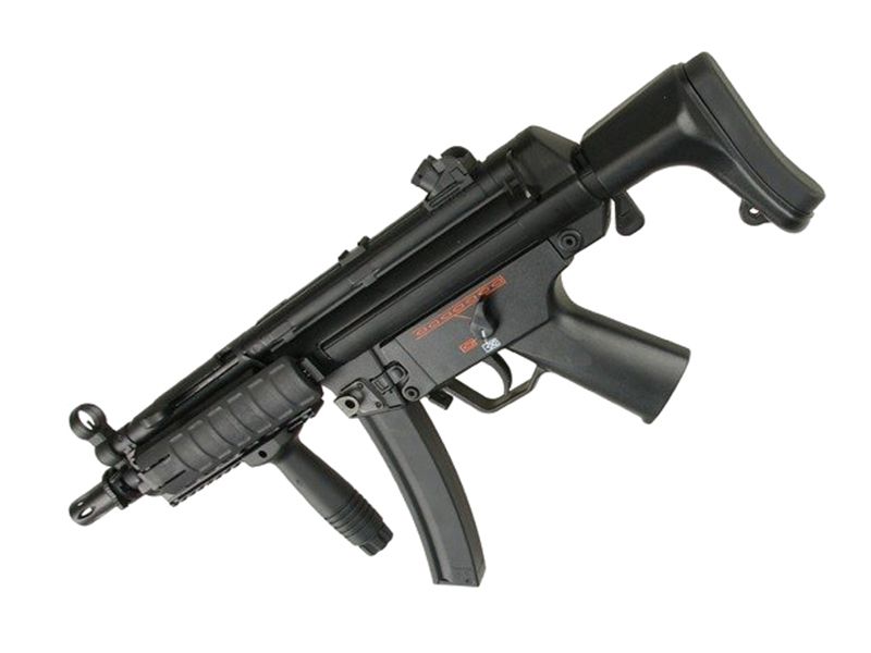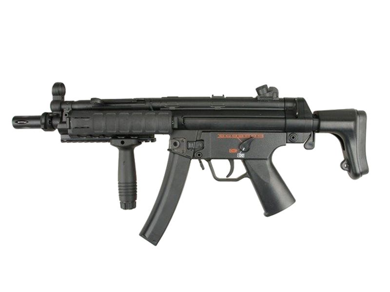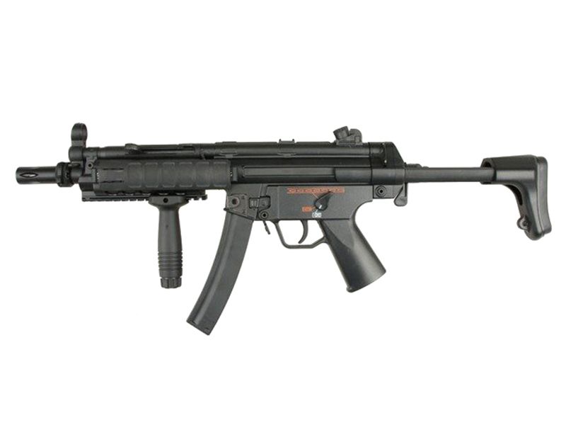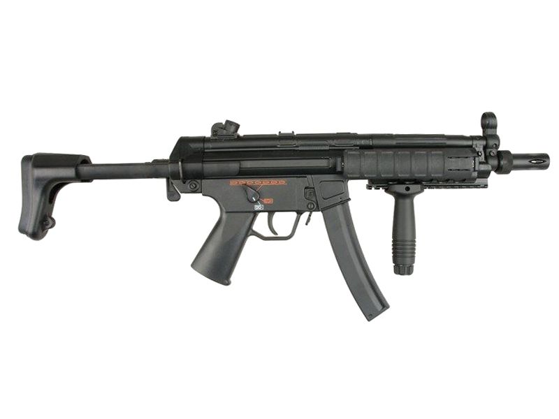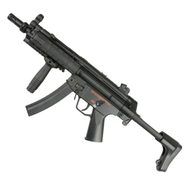 Made of durable ABS plastic this MP5SD has a built-in suppressor and retractable stock to allow for easier manoeuvrability in CQB. A very popular model in airsoft and an excellent starter gun for someone looking for something a bit different. It comes with one high cap magazine and battery