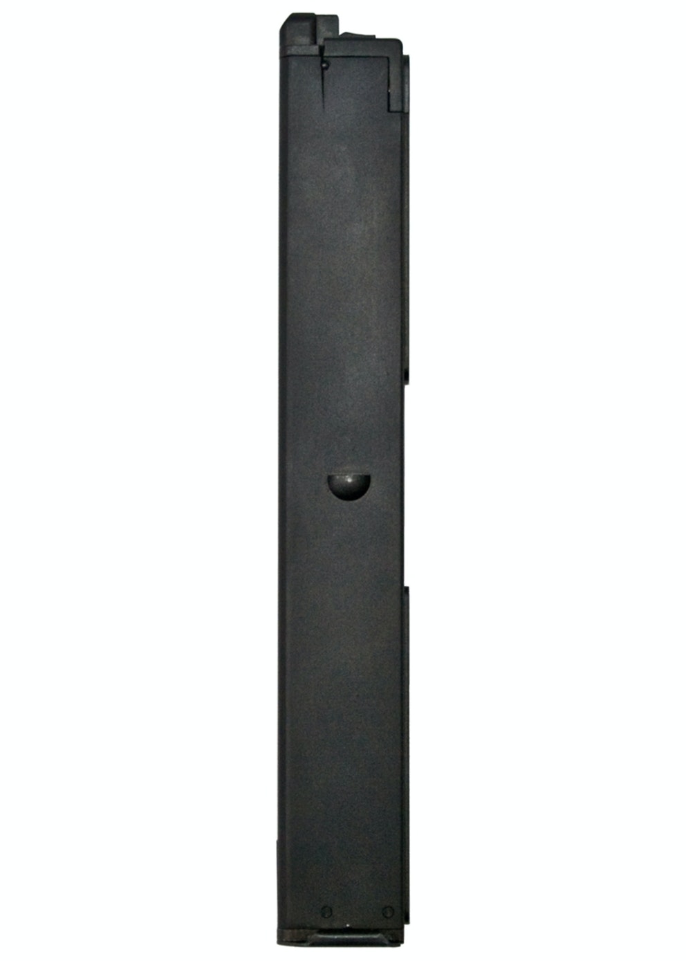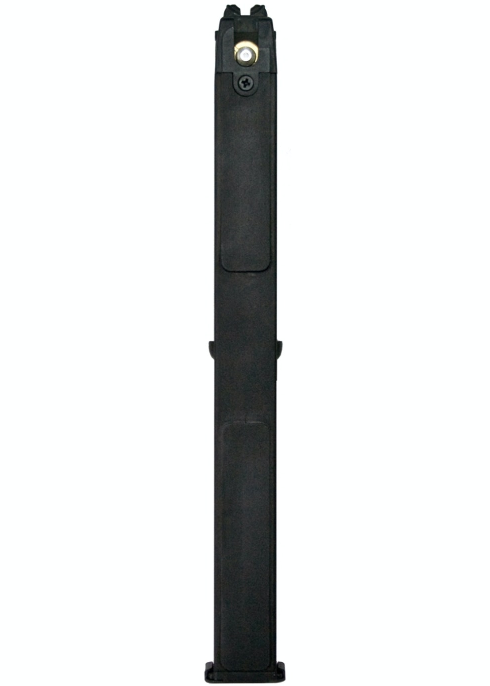 This 48rnd heavy-duty magazine is constructed primarily from a strong and tough alloy, with just as durable polymer feed lips. It will work with most airsoft gases filled from the valve on the base of the mag, however, it is not recommended for propane use. The BBs can be loaded with a speed loader from the top of the magazine.