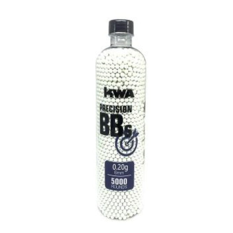 KWA Precision Premium BBs 0.20g 5000 BB BOTTLE 5.95mm 0.01mm tolerance Precision 6.01mm PDI or Lamda barrel tested 5000 bbs per bottle