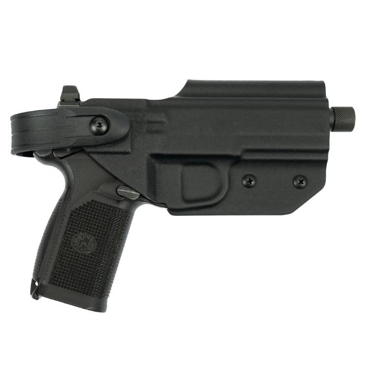 Open Muzzle Design: Accommodates threaded barrels and muzzle devices no wider than the slide/frame.