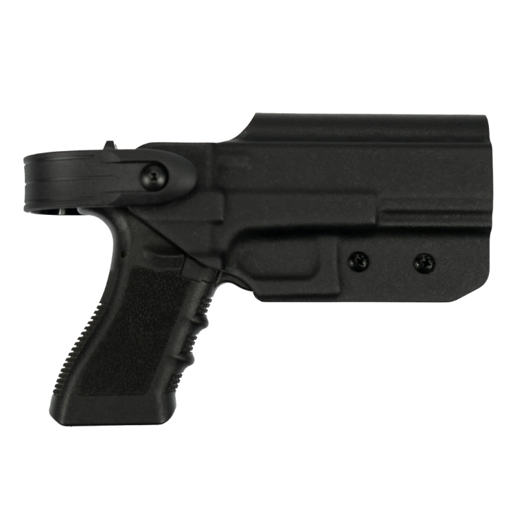 The Level 2 Sentry Glock Holster is designed to fit all generations of Real Steel and Airsoft Glock models 17, 17L, 18, 19, 22, 34, 35, and 45. Made in the UK from 2mm (.08”) P1 Kydex imported from the US, it’s optionally wrapped in 1000D or 500D Cordura fabric for added durability and versatility. The Level 2 locking hood system ensures secure retention, allowing release only when activated and rotated forward by the user.