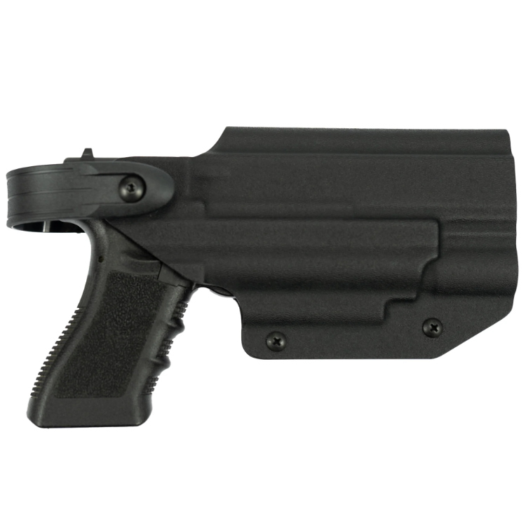 The Level 2 Sentry Glock Holster is designed to fit all generations of Real Steel and Airsoft Glock models 17, 17L, 18, 19, 22, 34, 35, and 45. Made in the UK from 2mm (.08”) P1 Kydex imported from the US, it’s optionally wrapped in 1000D or 500D Cordura fabric for added durability and versatility. The Level 2 locking hood system ensures secure retention, allowing release only when activated and rotated forward by the user.