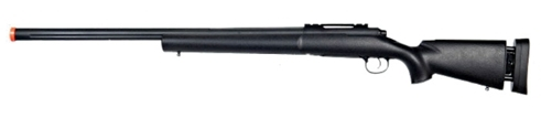 Brings custom build features to an out-of-the-box, long-range dominator. This sniper rifle features a textured injection-molded polymer chassis, aluminum alloy barrel, and receiver, as well as a 20mm rail for mounting optics of your choice. Internally, the M24 has been factory upgraded with a machined aluminum alloy piston, machined aluminum cylinder, stainless steel spring guide, and brass air nozzle. Clocking in at 400 FPS the A&K M24 is the premier choice for out-of-the-box, long-range kill shots.