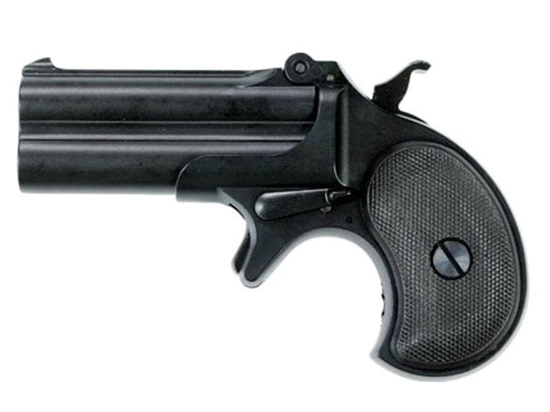 The Derringer is an iconic classic gun usually seen from the old Western era. The gun was always something that the hero or heroine would hide away for their last minute draw to take the upper hand. Its real steel counter part was also used for deep concealment and fired 2 rounds at the target. Accuracy was not usually what the Derringer was known for but when time came, it did the trick.