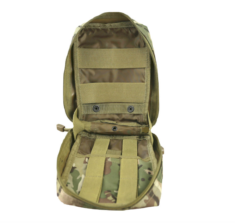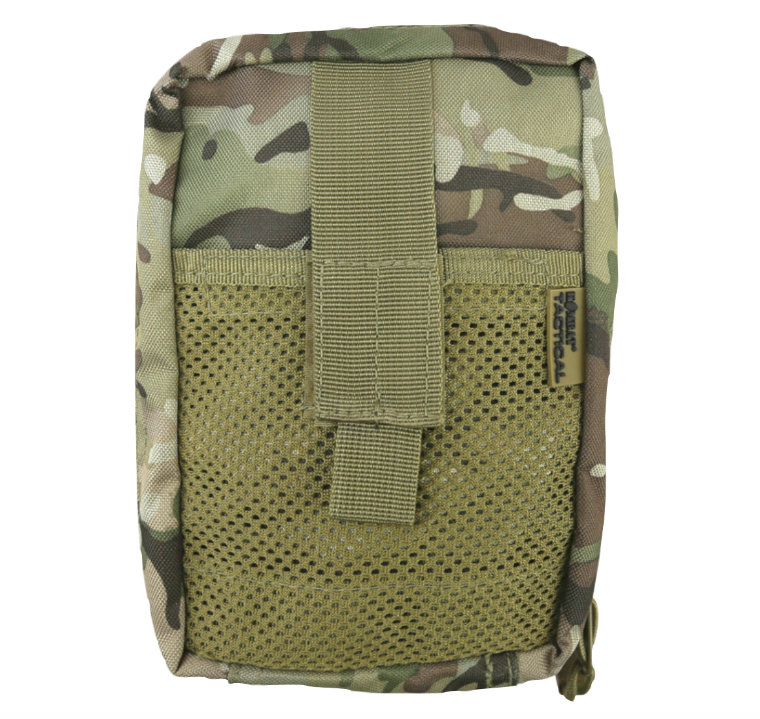 • Fold out main compartment with secure elastic straps that are designed to fit all current issued medical kit