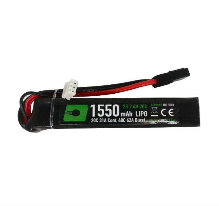 Type: LiPo – Lithium Polymer Voltage: 7.4 v Capacity: 1550 mAh Connector: Small Tamiya Cell Count: 2 Continuous Rate: 20 C at 31 A Burst Rate: 40 C at 62 A Configuration: Stick Dimensions: 90 x 18 x 17 mm