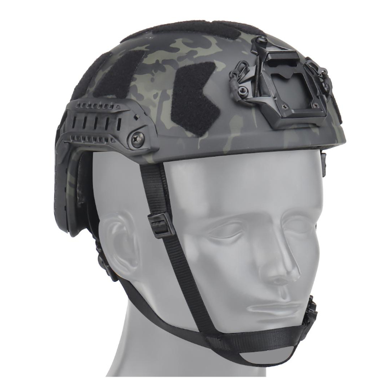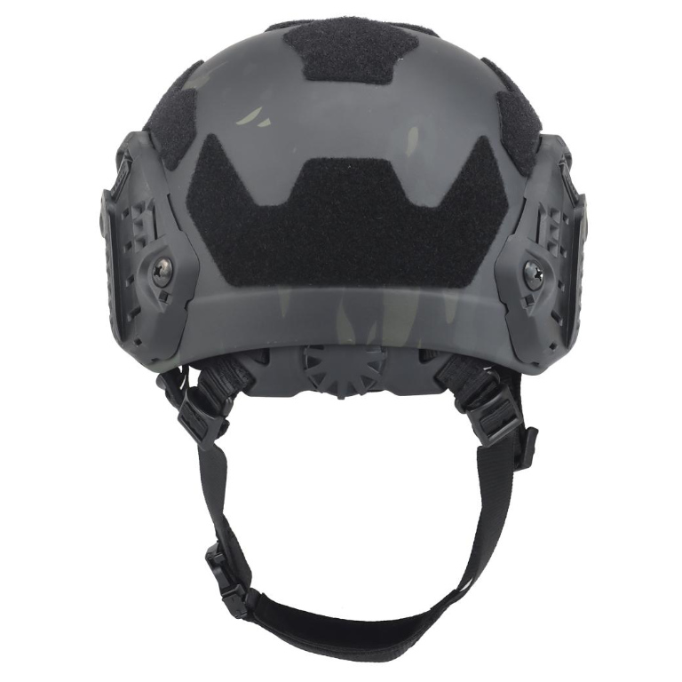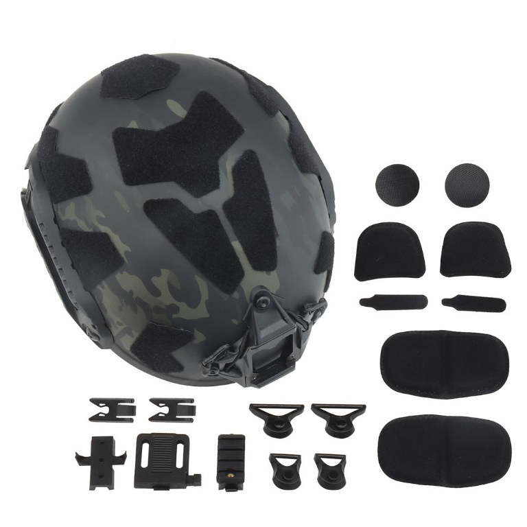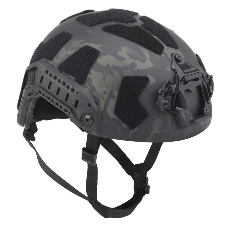 Manufactured from durable Polypropylene and internally padded with thick sponge cushions for comfort. The helmets roughed surface provides low reflectivity, keeping you hidden when prowling the outer edges of the airsoft field. A forward mount for Cameras/ NVGs as well as side rails for further accessories ensure this helmet is ready for when you want to go ‘tactical’. The side rails also feature ‘buckle holes’ to be used with compatible face protection. Internally, a deep-cut band has been provided in the top to allow the helmet to be used with a variety of communication headsets. Plenty of Velcro strips are mounted to the outside for you to ‘pin your colours’ with your collection of Airsoft Patches.
