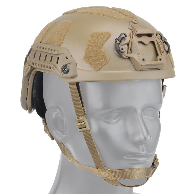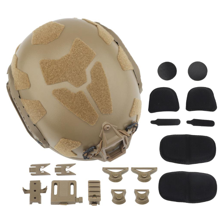 Manufactured from durable Polypropylene and internally padded with thick sponge cushions for comfort. The helmets roughed surface provides low reflectivity, keeping you hidden when prowling the outer edges of the airsoft field. A forward mount for Cameras/ NVGs, as well as side rails for further accessories, ensure this helmet is ready for when you want to go ‘tactical’. The side rails also feature ‘buckle holes’ to be used with compatible face protection. Internally, a deep-cut band has been provided in the top to allow the helmet to be used with a variety of communication headsets. Plenty of Velcro strips are mounted to the outside for you to ‘pin your colours’ with your collection of Airsoft Patches.