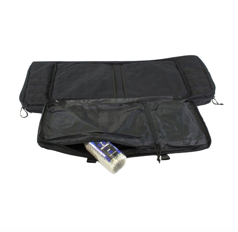 Nuprols Deluxe Soft Rifle Bag is designed to transport your airsoft weapons and equipment together.  Up to two rifles can be carried in the main section which has padded outer walls to protect them from knocking against anything outside the case and also a padded divider to stop the rifles knocking against each other